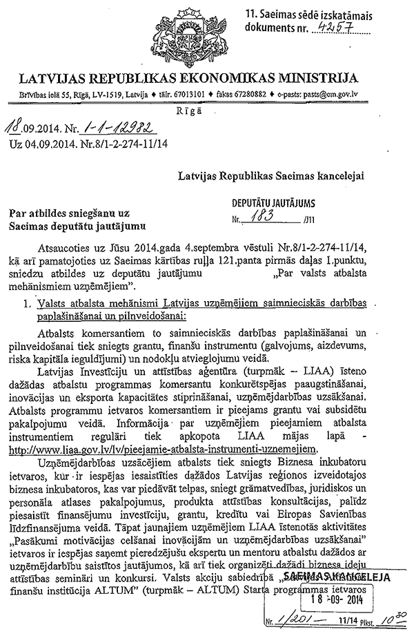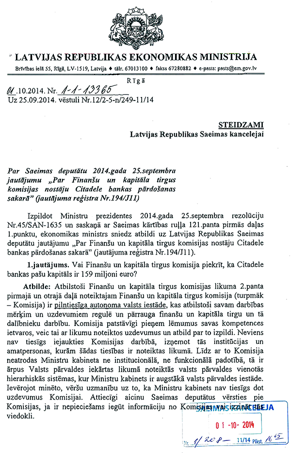 E.Smiltēns. 65. – Finanšu ministrijas parlamentārās sekretāres Lolitas Čigānes priekšlikums. Diemžēl nav atbalstīts.
