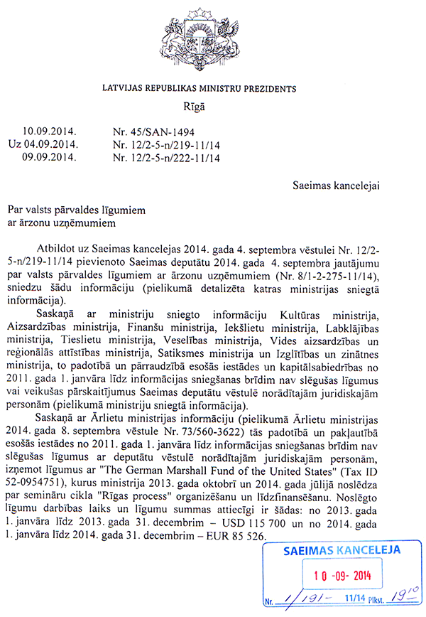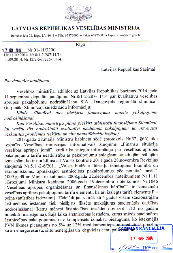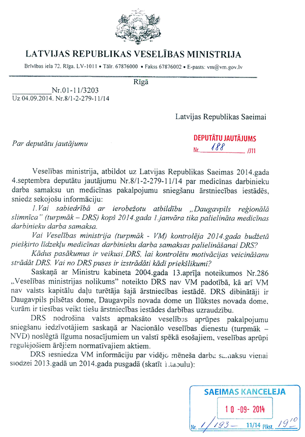 Rakstveidā sniegtās atbildes uz deputātu jautājumiem