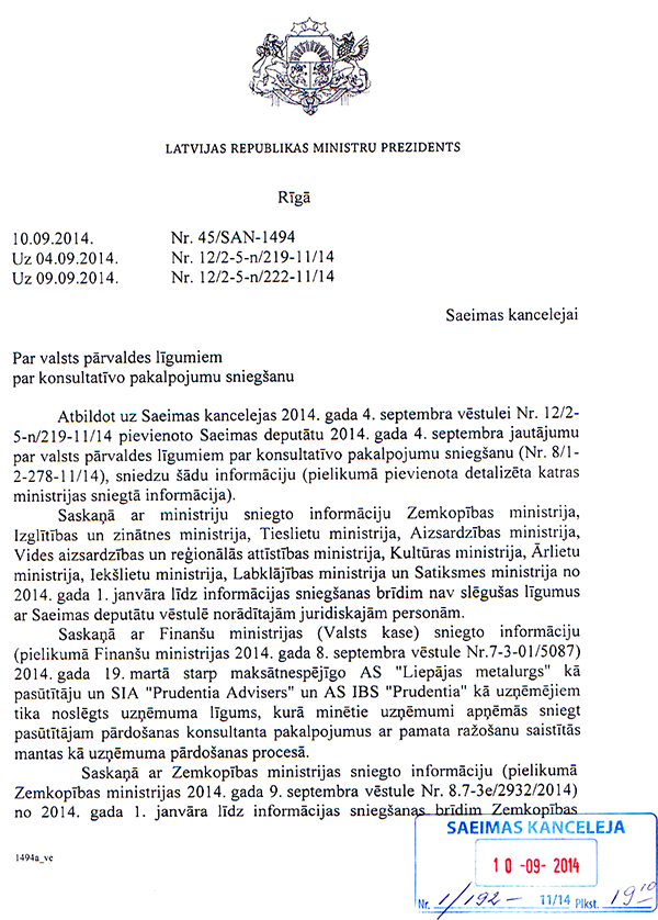 Latvijas Republikas 11.Saeimas rudens sesijas devītā sēde 2014.gada 30.oktobrī