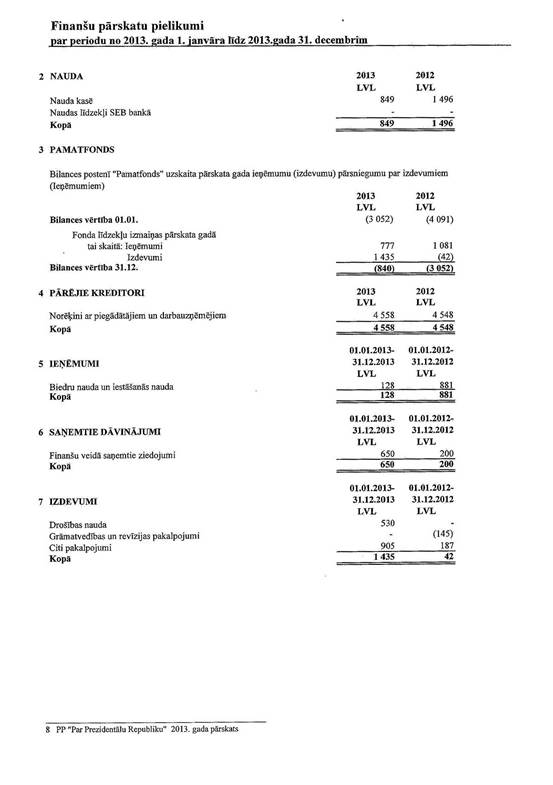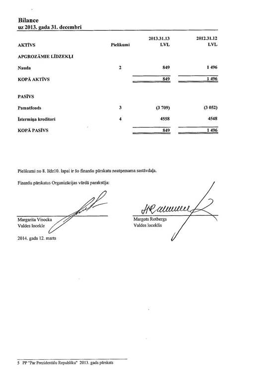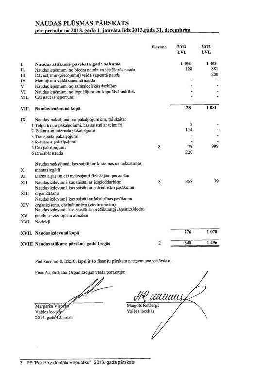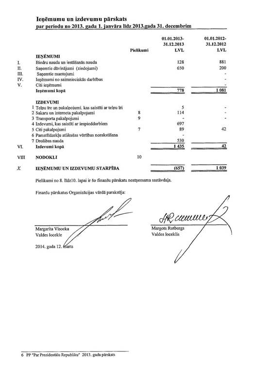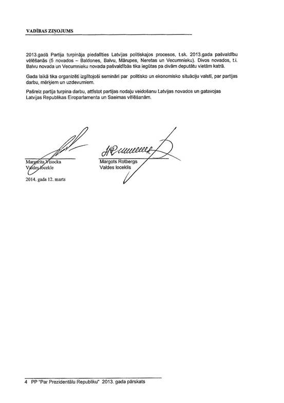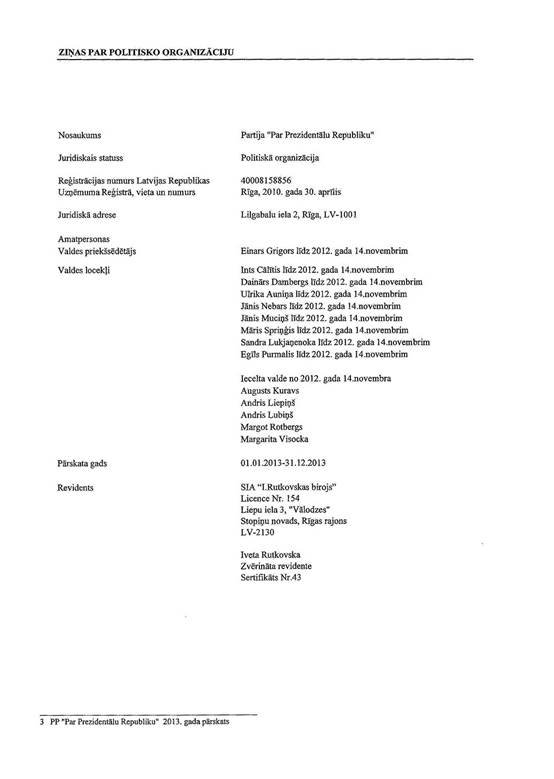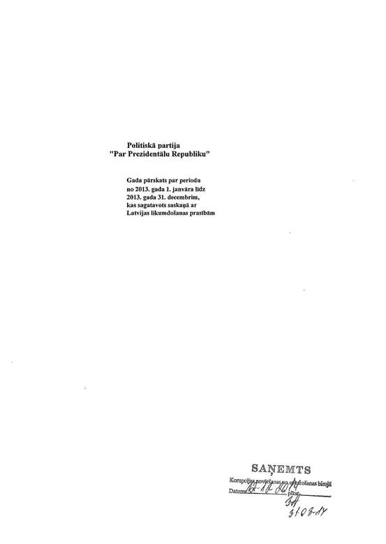 Politiskās partijas "Par prezidentālu republiku", reģ. Nr.40008158856, gada pārskats par 2013.gadu