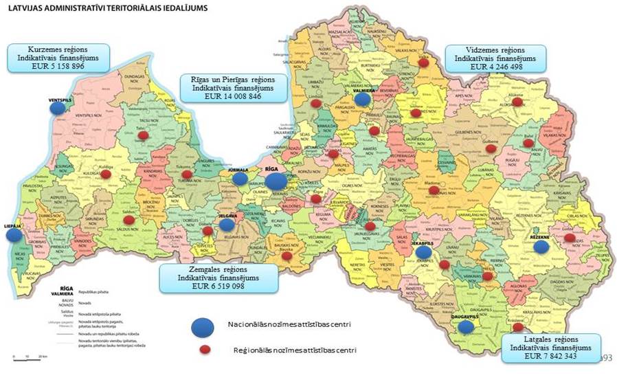 1.4. Indikatīvais finansējuma sadalījuma apjoms pa tematiskajiem mērķiem (EUR)