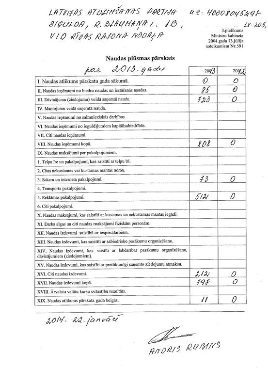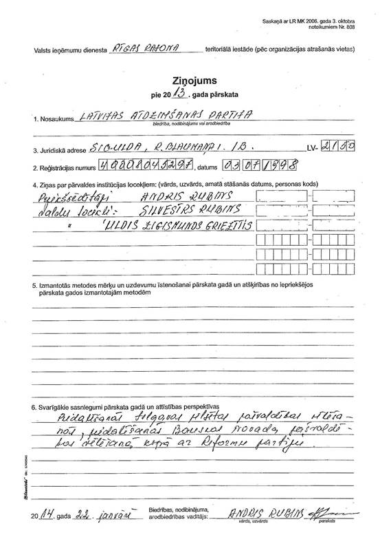 Politiskās partijas "Latvijas Atdzimšanas partija" gada pārskats par 2013.gadu