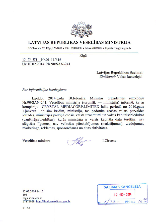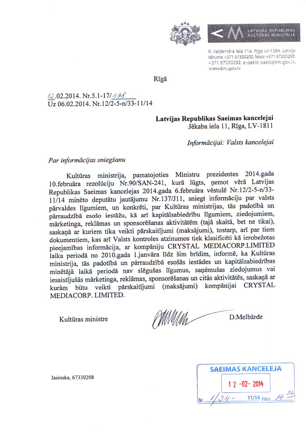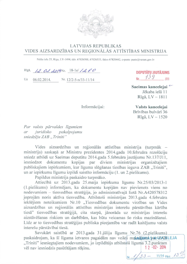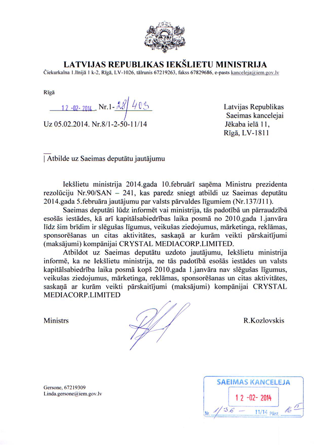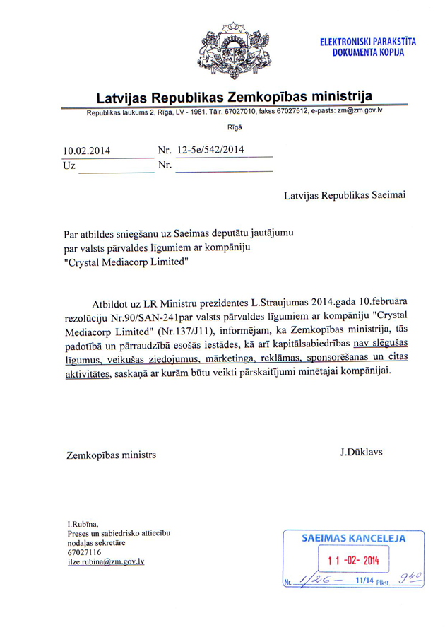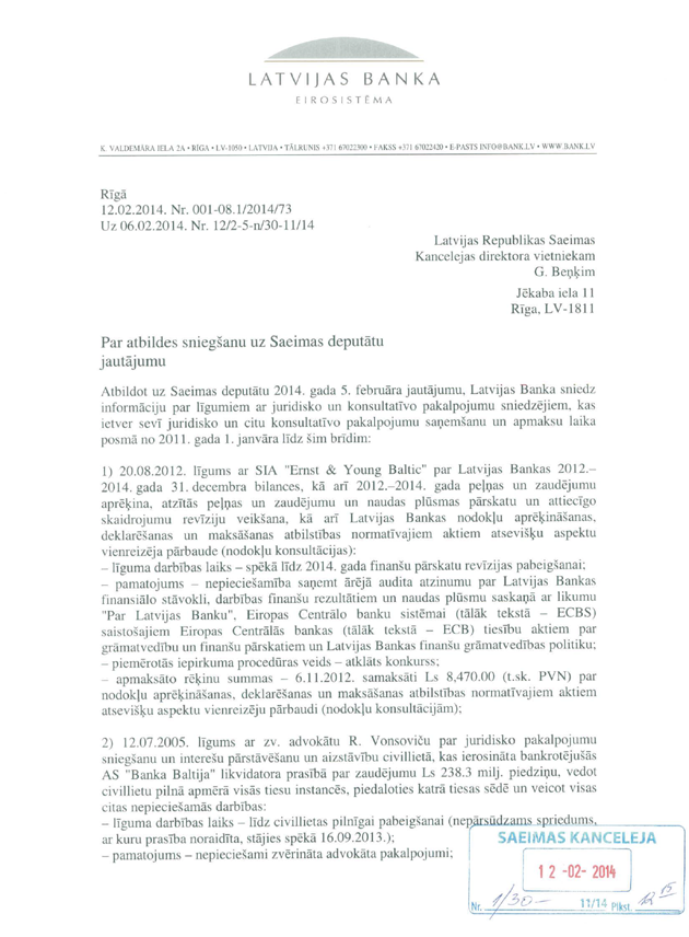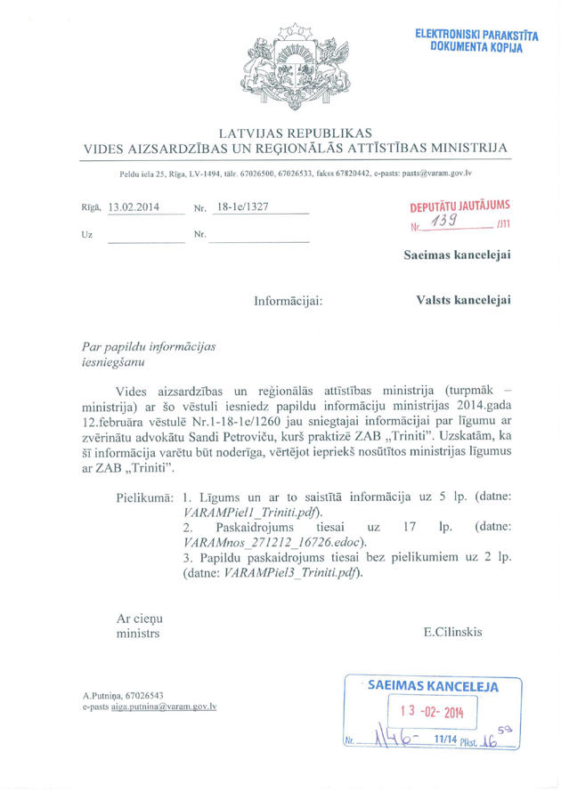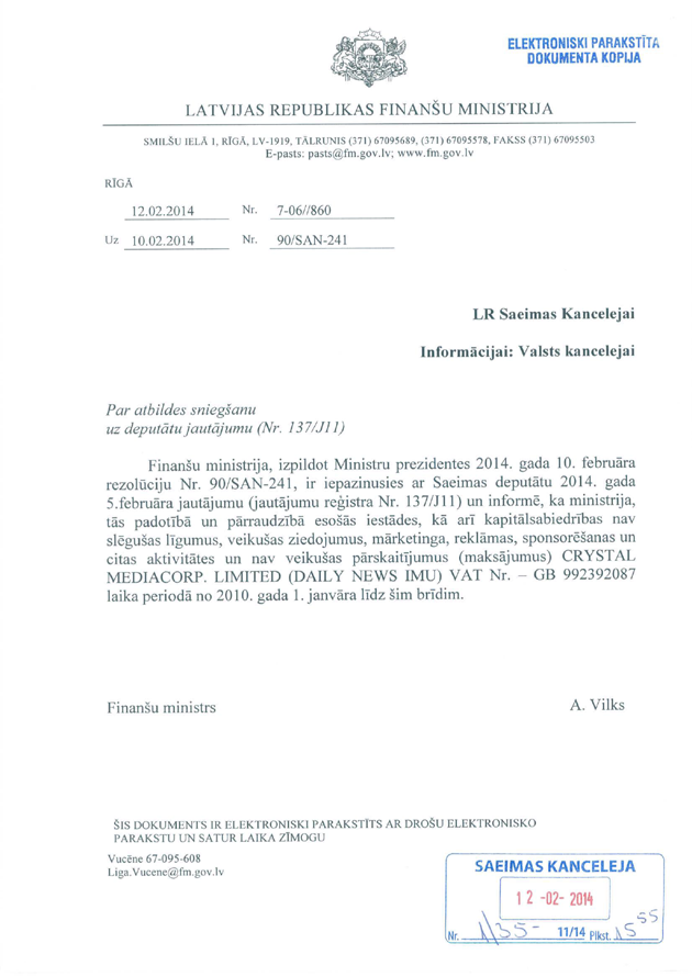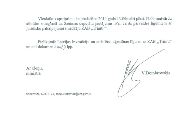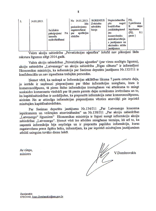 V.Dombrovskis. Priekšlikumu iesniegšanas termiņš – šī gada 20.februāris, likumprojekta izskatīšana otrajā lasījumā – Saeimas 27.februāra sēdē.