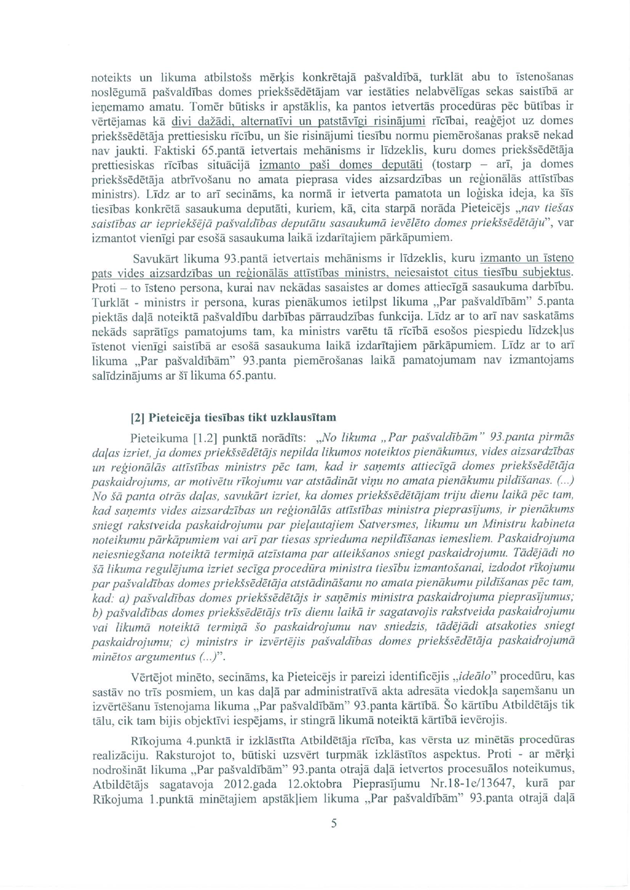 Un, rezultātā uztverot konstruktīvos priekšlikumus, bet nenovirzoties no mērķa, ka ievadam pastāvošās tiesību sistēmas ietvaros ir jāatklāj un tādā veidā ir jāstiprina valsts pamati, šis jau nobriedušais un izsvērtais projekts tiek nodots tālākai apspriešanai Saeimai kā Satversmes leģitimētajam regulārajam konstitucionālajam likumdevējam.
