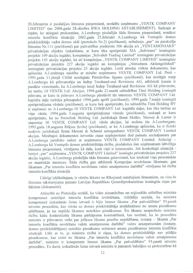 Valsts pārvaldes un pašvaldības komisija ir izstrādājusi grozījumu likumā "Par interešu konflikta novēršanu valsts amatpersonu darbībā", kas ir saistīts ar veidu, kādā varēs piesaistīt ziedojumus Latvijas prezidentūrai Eiropas Savienības Padomē. Proti, ar šo likuma grozījumu mēs paredzam: ja kāds komersants izvēlēsies ziedot prezidentūras vajadzībām, šim komersantam būs iespējas saņemt publicitātes pakalpojumu, respektīvi, prezidentūras norises laikā izvietot informāciju par sevi, par savu uzņēmumu un saviem produktiem.