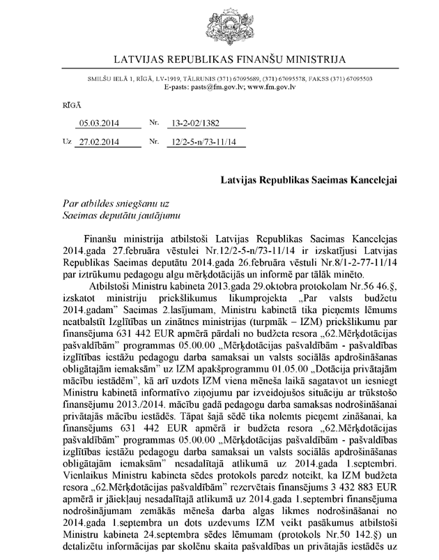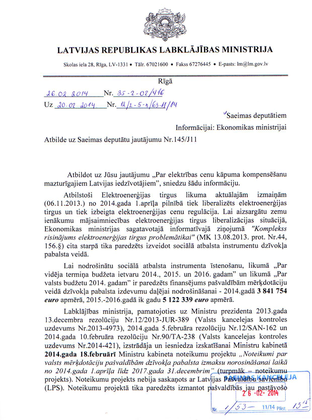 Šajā, 3.marta, Saeimas Eiropas lietu komisijas un Ārlietu komisijas kopīgajā paziņojumā paustais Krievijas militārās agresijas nosodījums, kā arī prasība Krievijai ievērot starptautisko tiesību normas un pašas uzņemtās saistības un veikt tūlītēju armijas vienību izvešanu uz to bāzēm saskan ar to pozīciju, kādu Latvijas ārlietu ministrs pauda iepriekš minētajā Eiropas Savienības Ārlietu ministru padomes ārkārtas sanāksmē, kā arī ar Latvijas oficiālo nostāju, kādu Latvijas premjerministre Laimdota Straujuma šodien paudīs Briselē notiekošajā Eiropadomes ārkārtas samitā, kurā Eiropas Savienības valstu un valdību vadītāji pārspriedīs Krievijas iebrukumu Krimā.