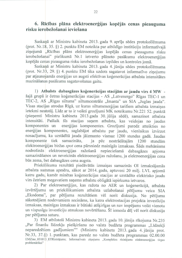 Punkts divi. Ministru kabinetam arī vajadzētu vienreiz ķerties klāt pie mājokļu problēmas kā kompleksas problēmas, kurā ietilpst arī šī problēma. Uz šo brīdi mājokļu lietas valstī tiek reglamentētas ar vairāk nekā 15 likumiem un vairāk nekā 30 Ministru kabineta noteikumiem. Līdz ar to šodien tie noteikumi... šos noteikumus un likumu grozījumus gatavo dažādas ministrijas, izskata dažādas Saeimas komisijas, kaut gan mājokļu politika ir ārkārtīgi svarīga ne tikai no ekonomiskā viedokļa, bet arī no valsts izdzīvošanas viedokļa, jo cilvēki tomēr dzīvo tur, kur viņiem ir jumts virs galvas.