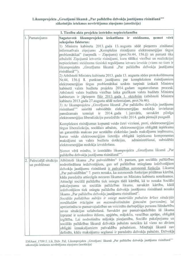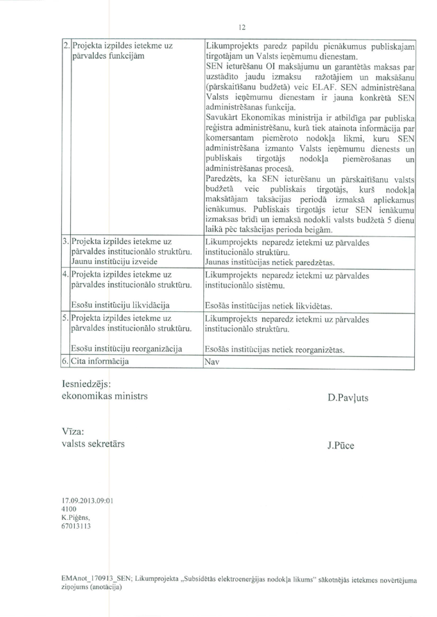 1. – tieslietu ministres Baibas Brokas priekšlikums, kurš nav atbalstīts.