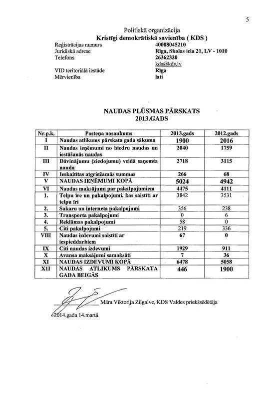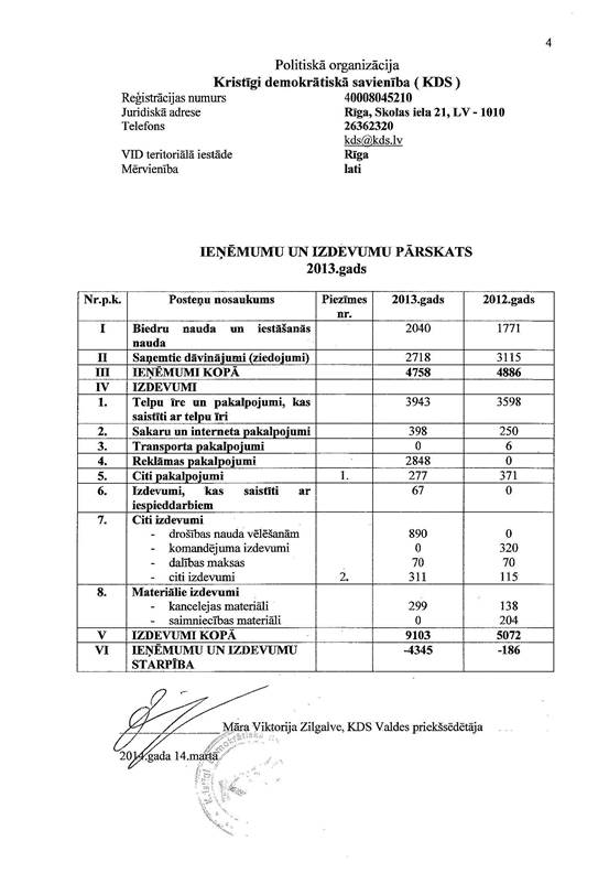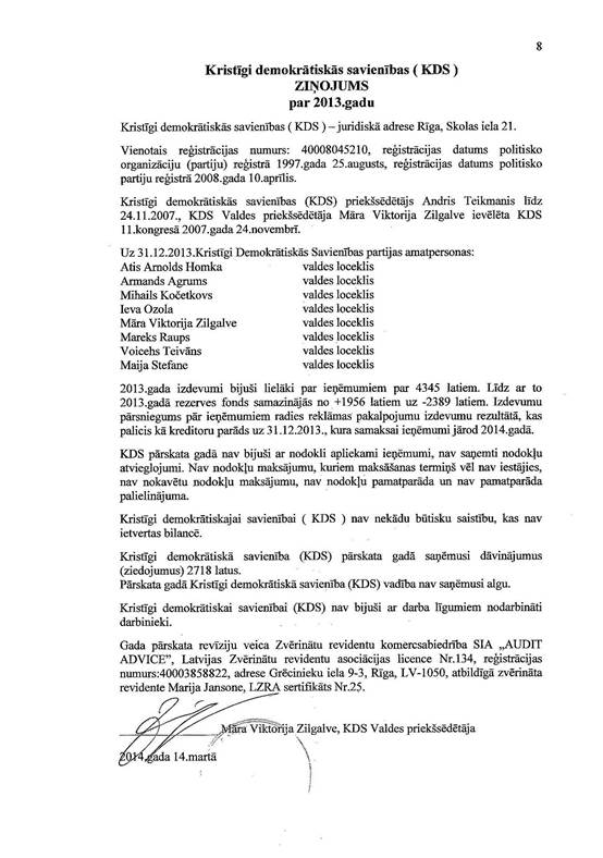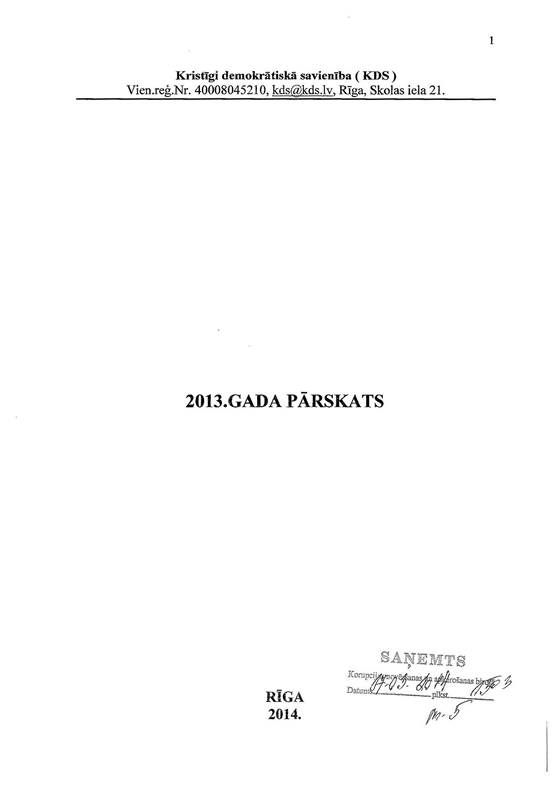 Politiskās partijas "Kristīgi demokrātiskā savienība", reģ. Nr.40008045210, gada pārskats par 2013.gadu