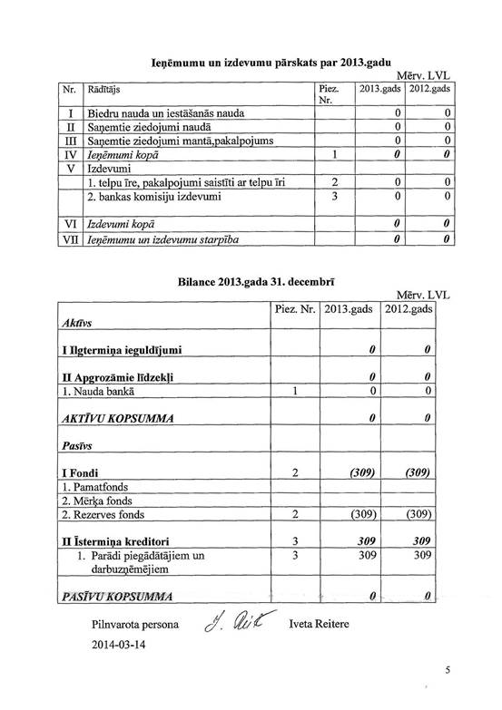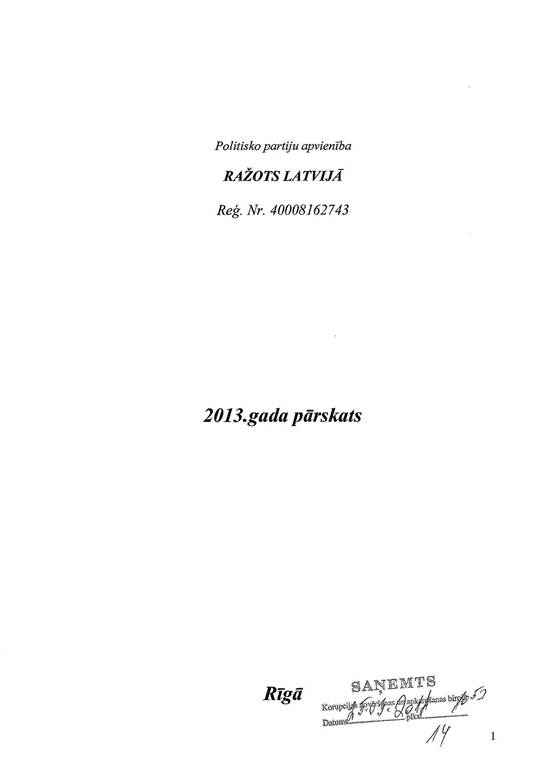Politisko partiju apvienības "Ražots Latvijā", reģ. Nr. 40008162743, gada pārskats par 2013.gadu