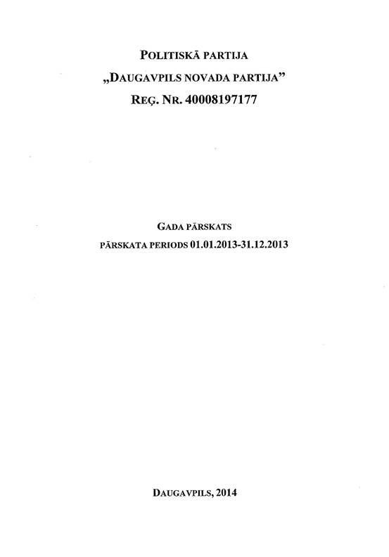 Politiskās partijas "Daugavpils novada partija", reģ. Nr. 40008197177, gada pārskats par 2013.gadu