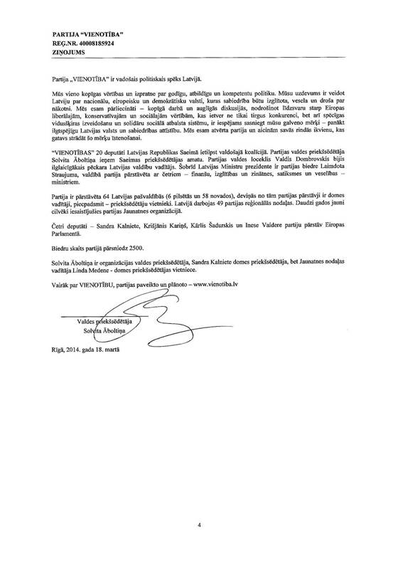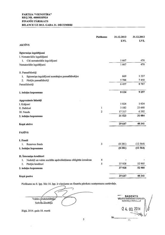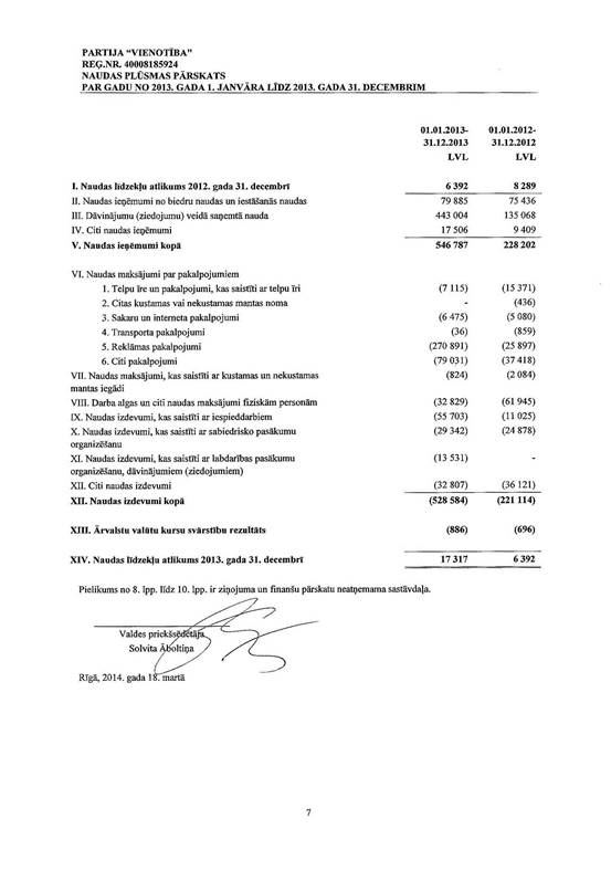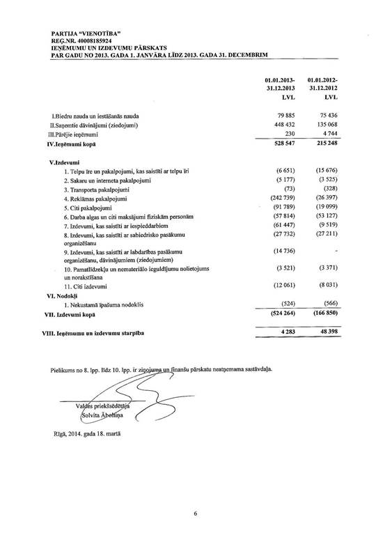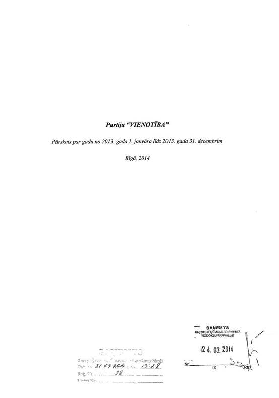 Politiskās partijas "Partija "VIENOTĪBA"", reģ. Nr.40008185924, gada pārskats par 2013.gadu