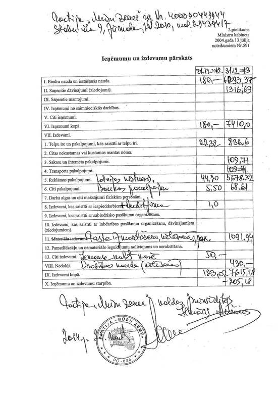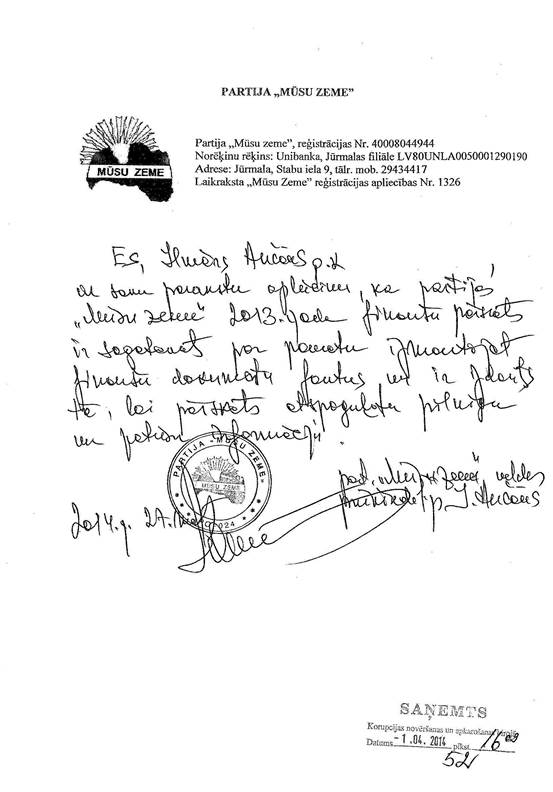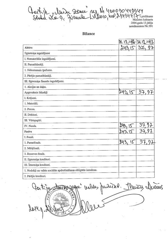 Politiskās partijas "Mūsu zeme", reģ. Nr.40008044944, gada pārskats par 2013.gadu