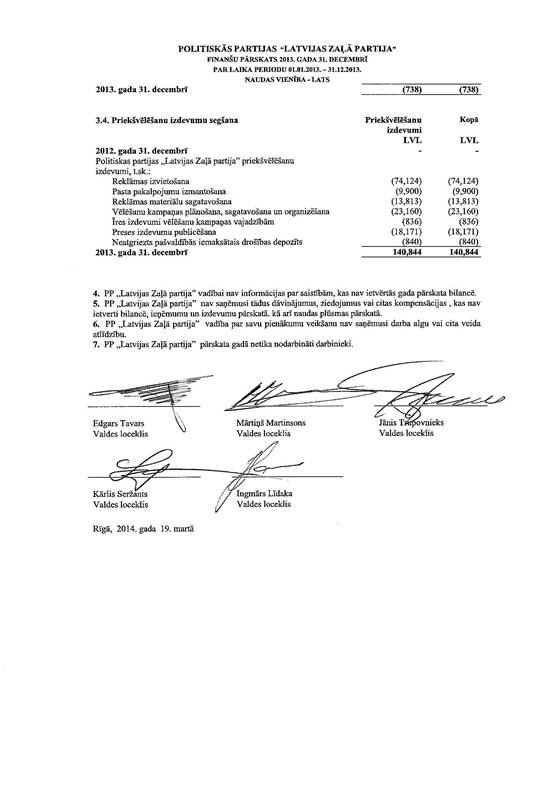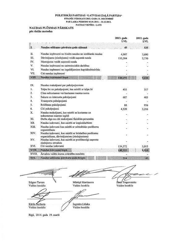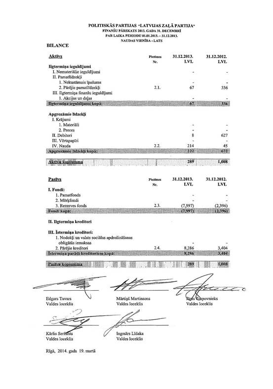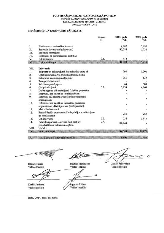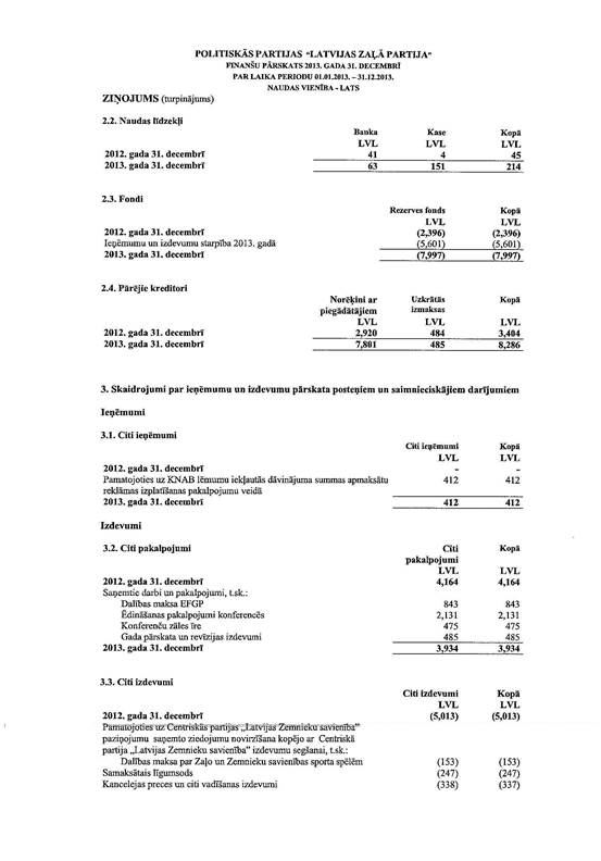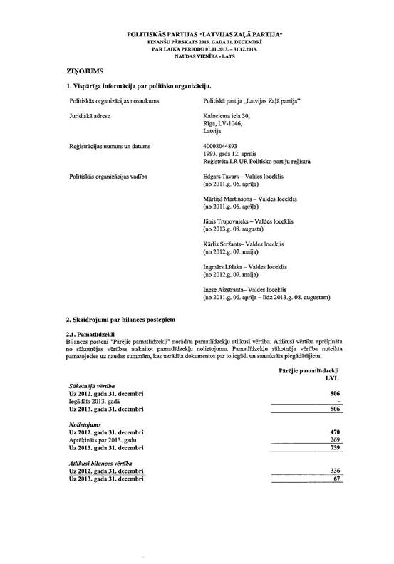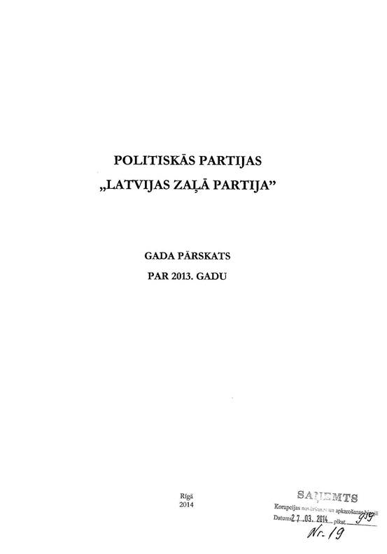 Politiskās partijas "Latvijas Zaļā partija", reģ.Nr.40008044893, gada pārskats par 2013.gadu