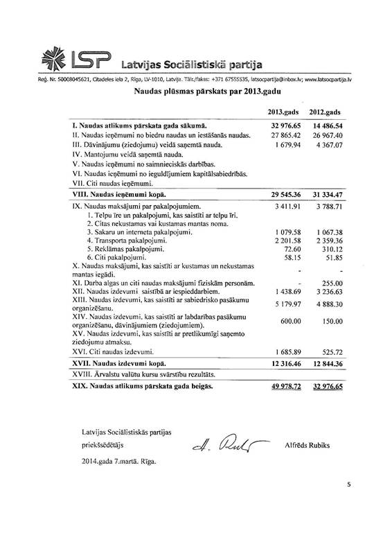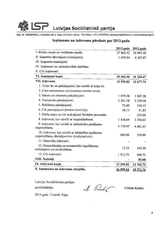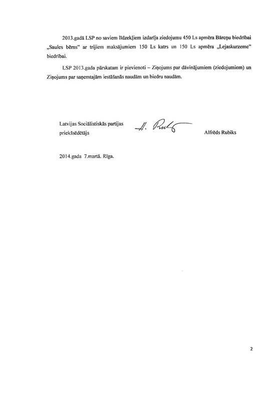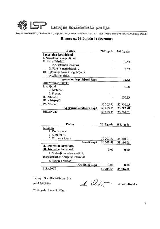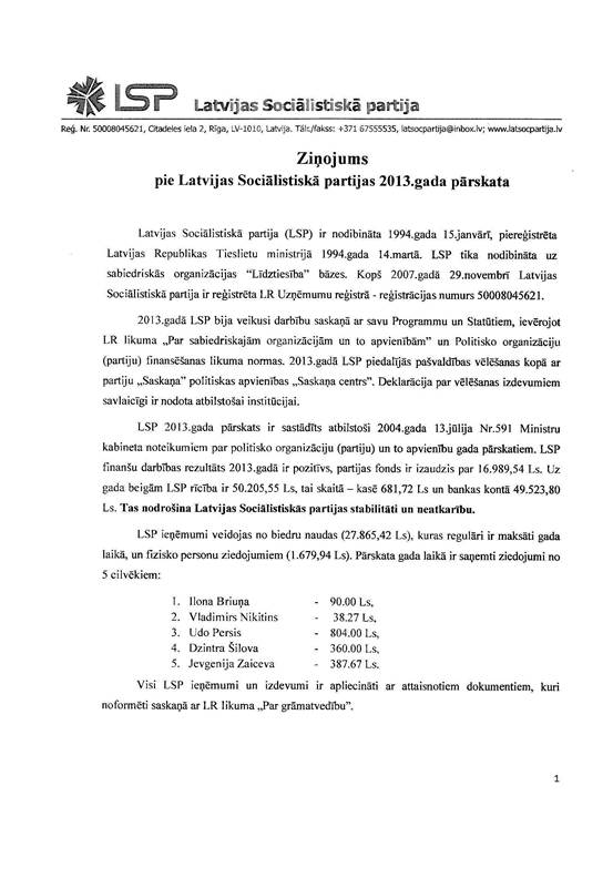 Politiskās partijas "Latvijas Sociālistiskā partija", reģ. Nr.50008045621, gada pārskats par 2013.gadu