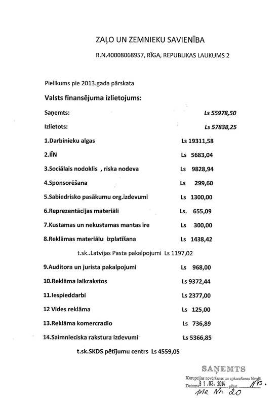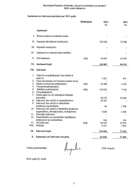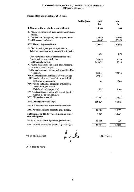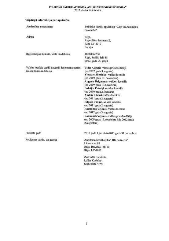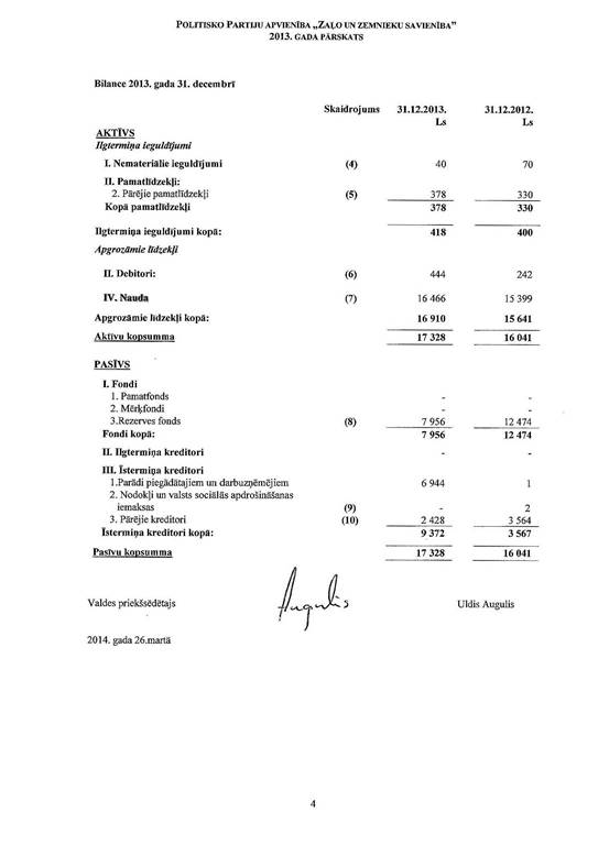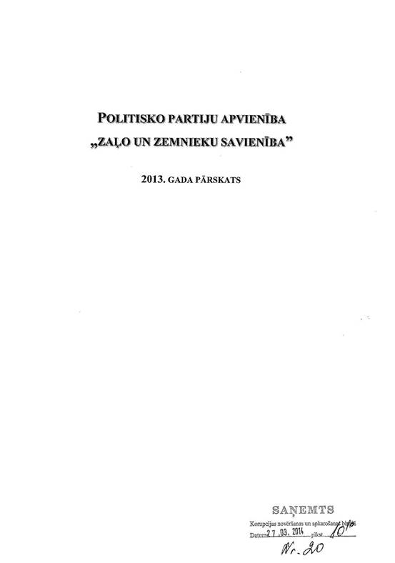 Politisko partiju apvienības "Zaļo un Zemnieku savienība", reģ. Nr. 40008068957, gada pārskats par 2013.gadu