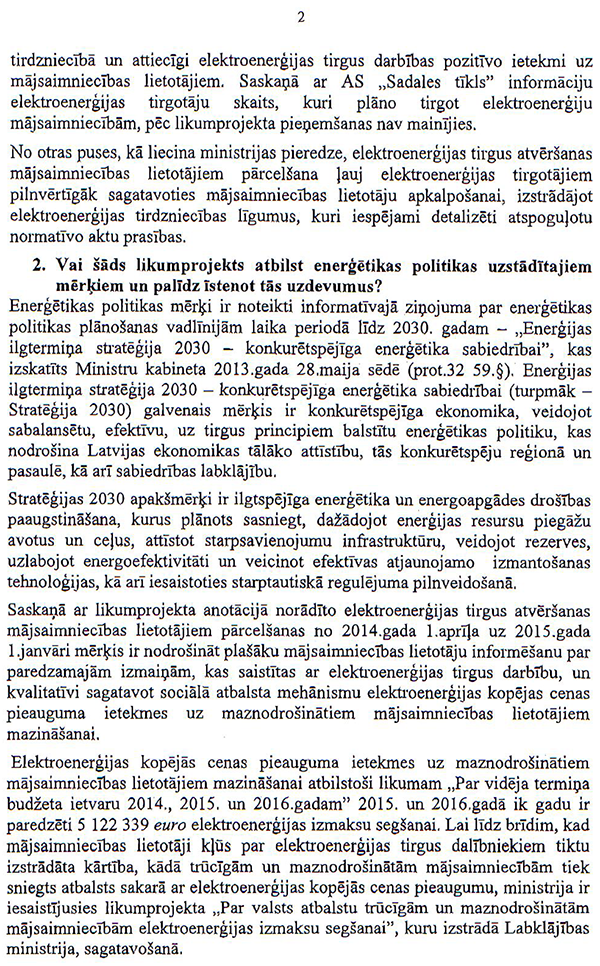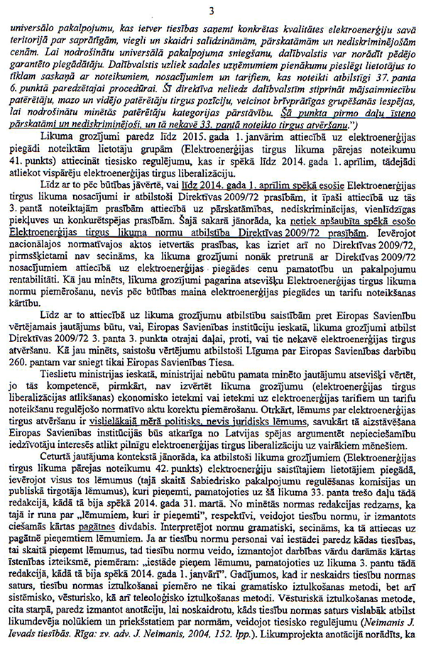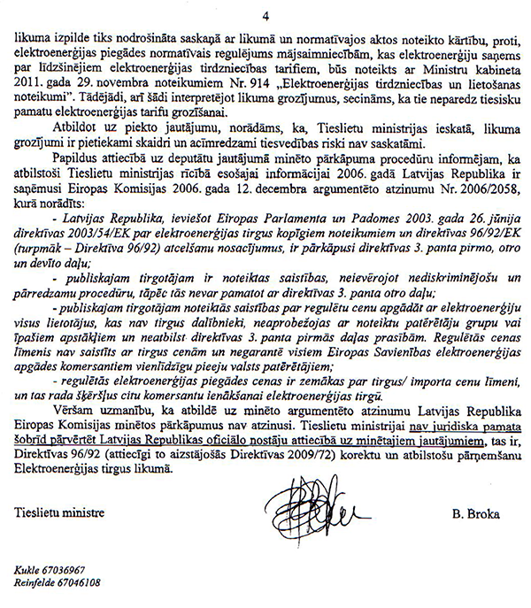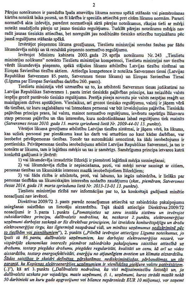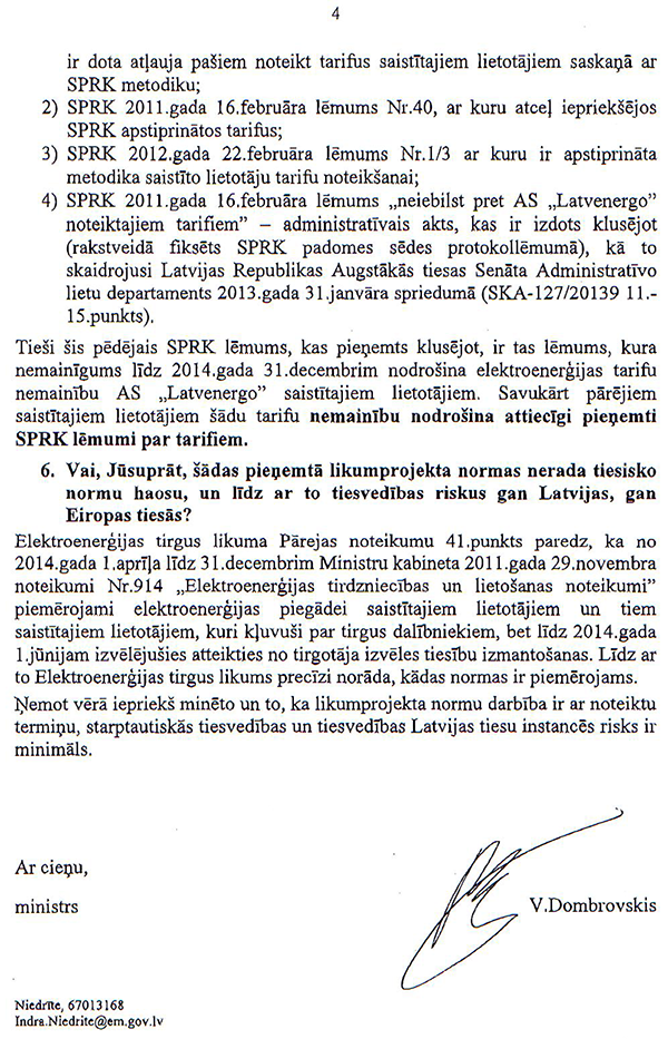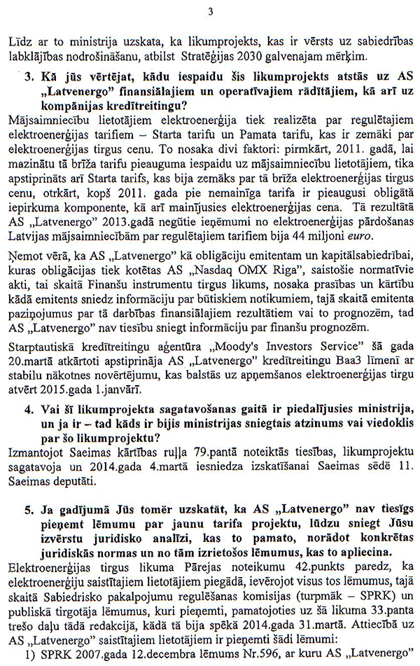 Es, protams, nevaru atbildēt "Latvenergo" vietā, vai arī viņi uzskata, ka viņiem tomēr ir pienākums vai nav pienākuma iet pie regulatora un prasīt citus tarifus. Bet vismaz tāda ir mūsu juridiskā interpretācija. Taču, kāda tā ir "Latvenergo", – to parādīs laiks.