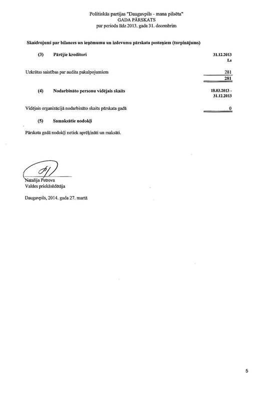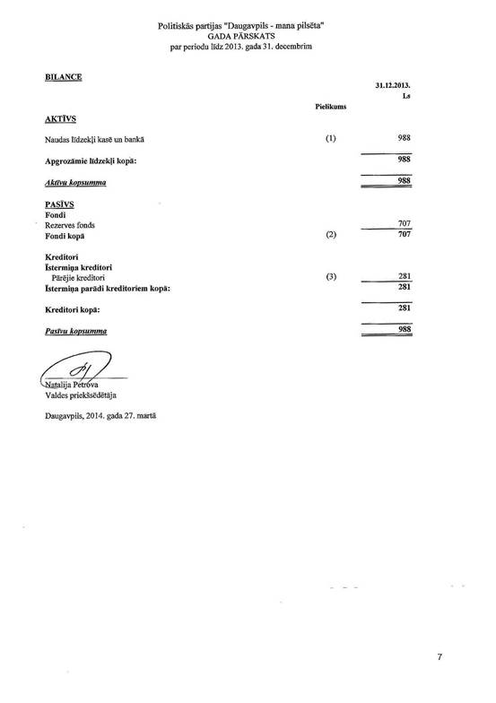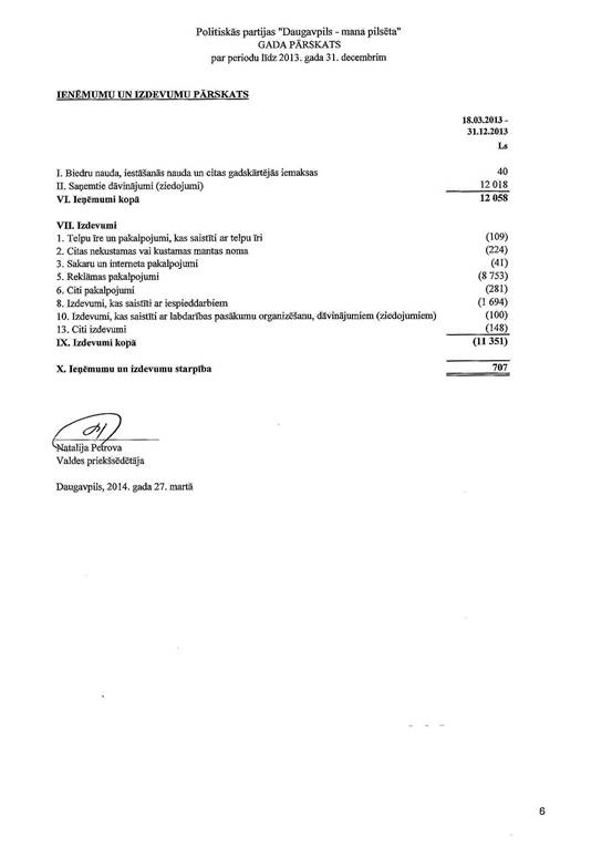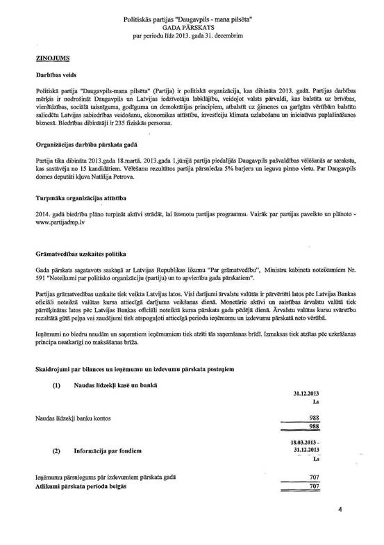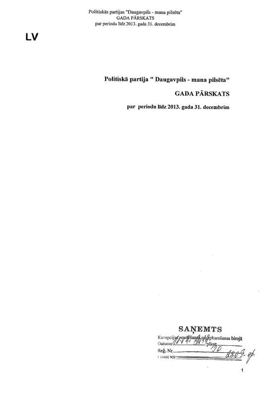 Politiskās partijas "Daugavpils - mana pilsēta", reģ.Nr.50008206931, gada pārskats par 2013.gadu
