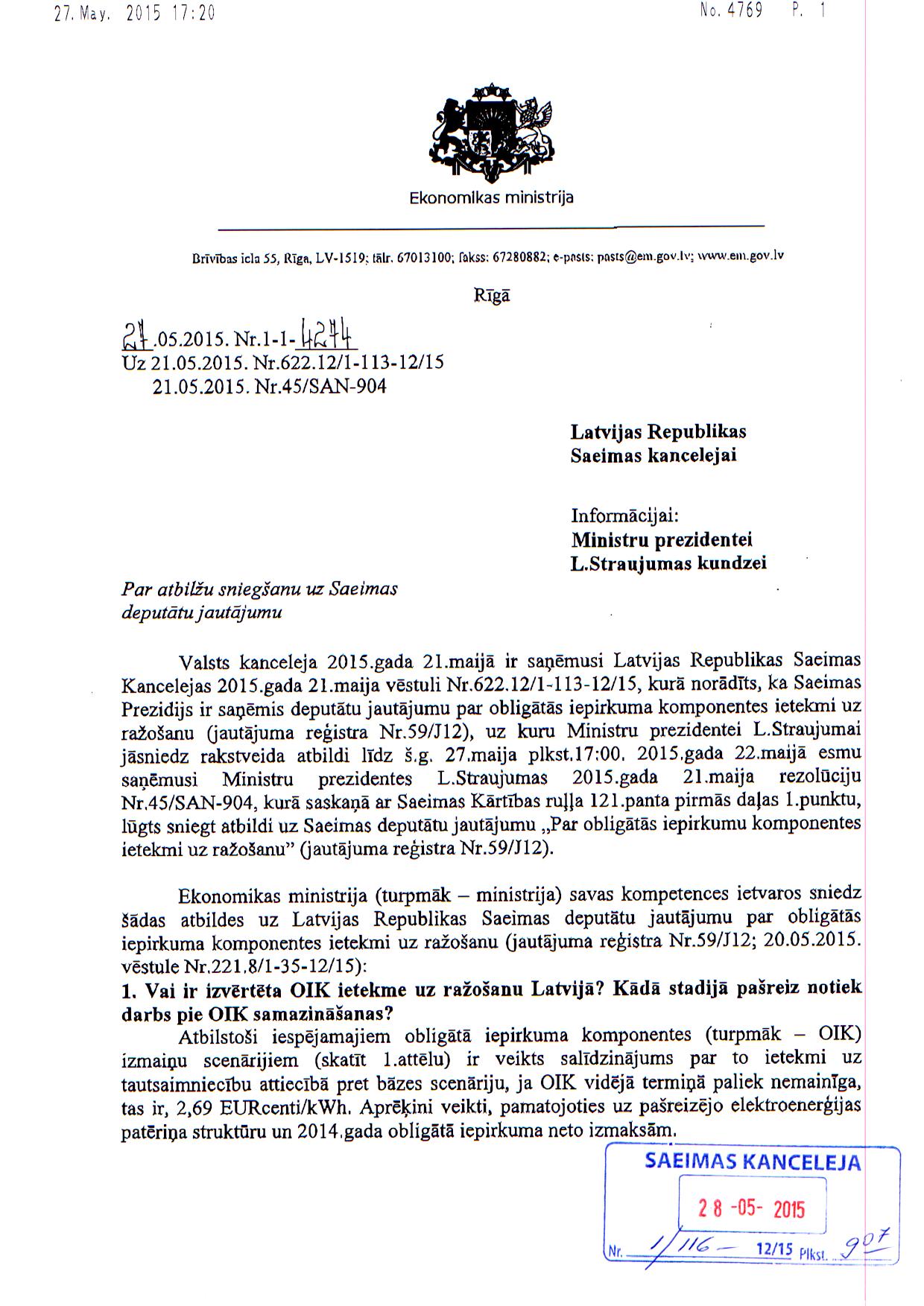 Atbildes uz deputātu jautājumiem 2015.gada 28.maijā