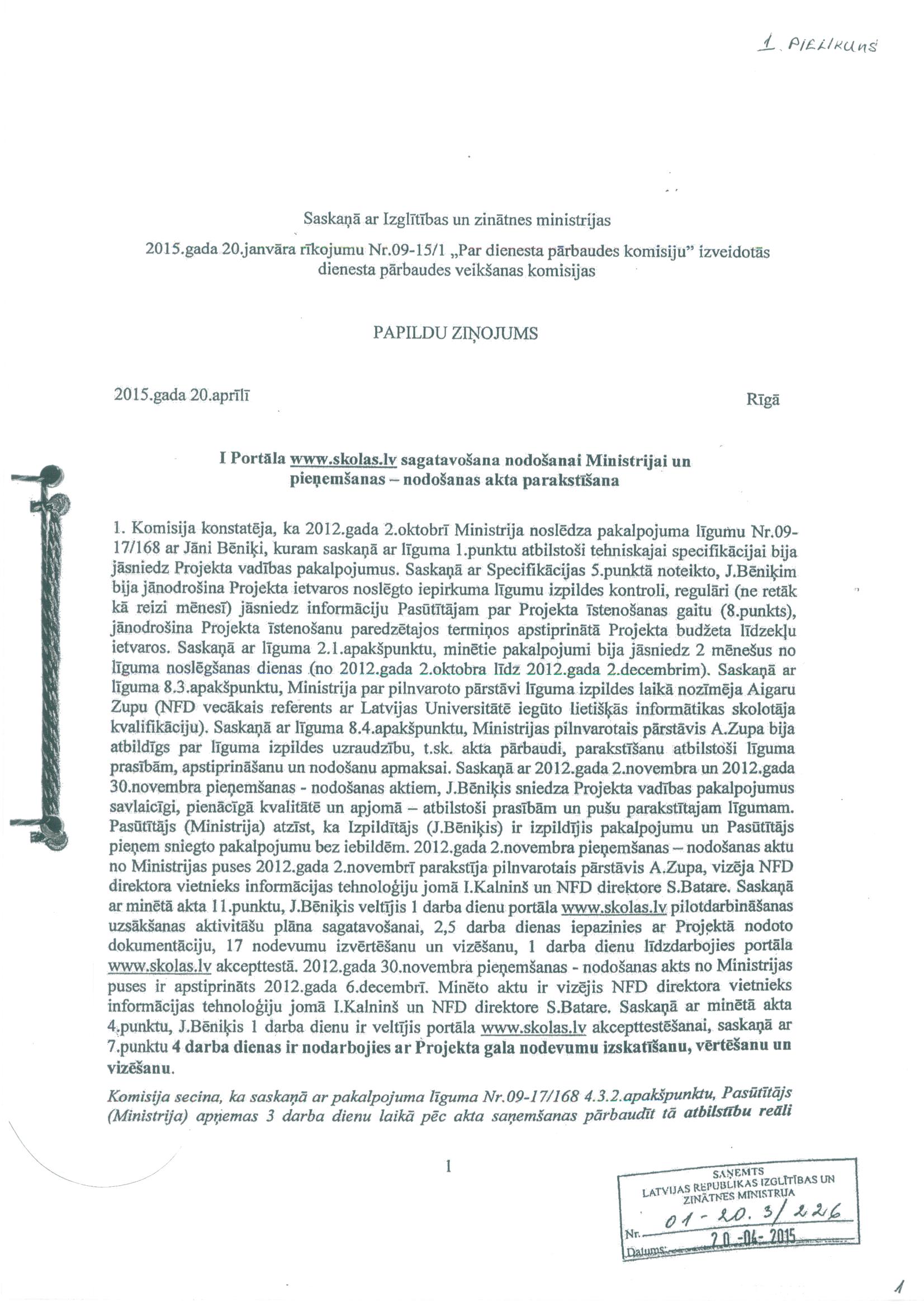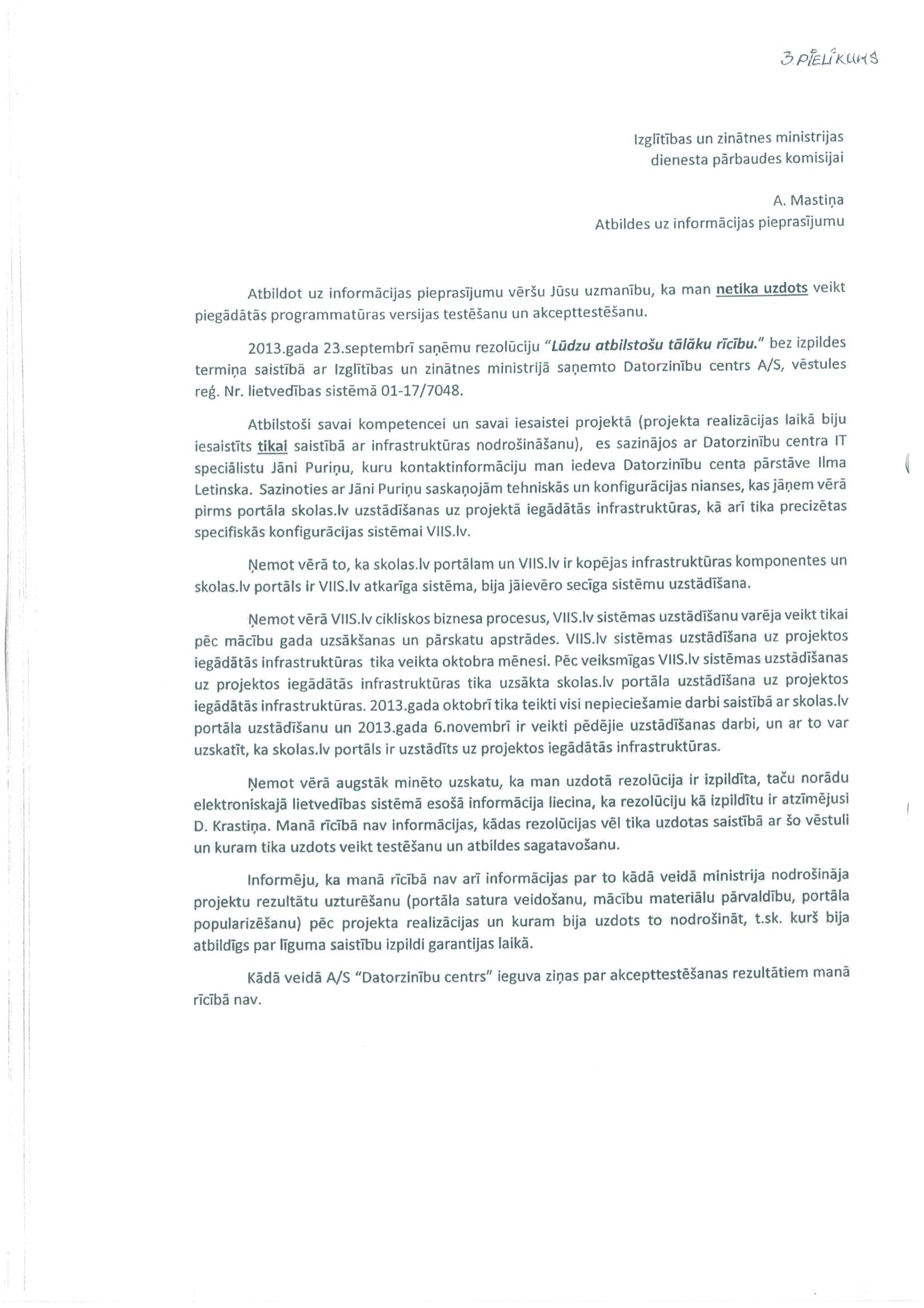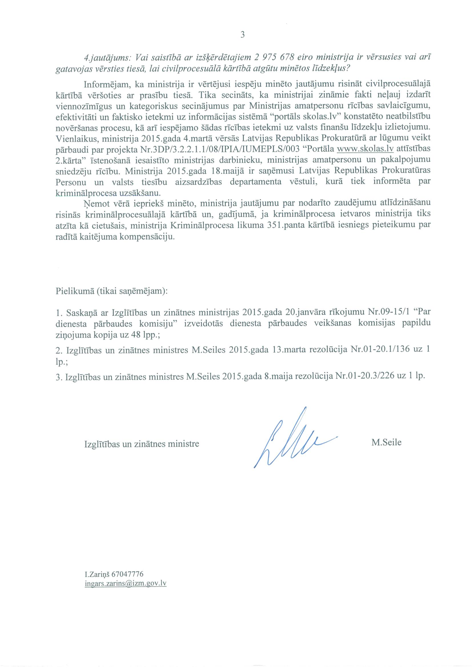 Ministra kungs, vai jūs vēlaties sniegt kādu papildu informāciju? Paldies. Tā kā ministra kungs papildu informāciju nevēlas sniegt, paziņošu kārtību, ka saskaņā ar Saeimas kārtības rulli jautājuma iesniedzējiem ir tiesības uzdot vēl divus papildu jautājumus.