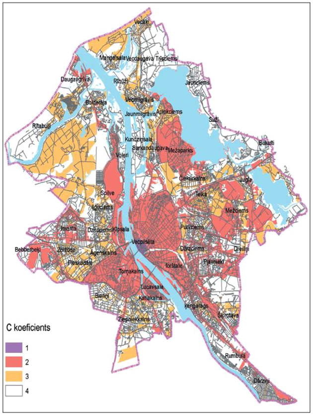 3.4. C – koeficients, kas piemērojams atkarībā no plānotā objekta atrašanās vietas Rīgas pilsētas administratīvās teritorijas zonējumā (3. un 4.pielikums);