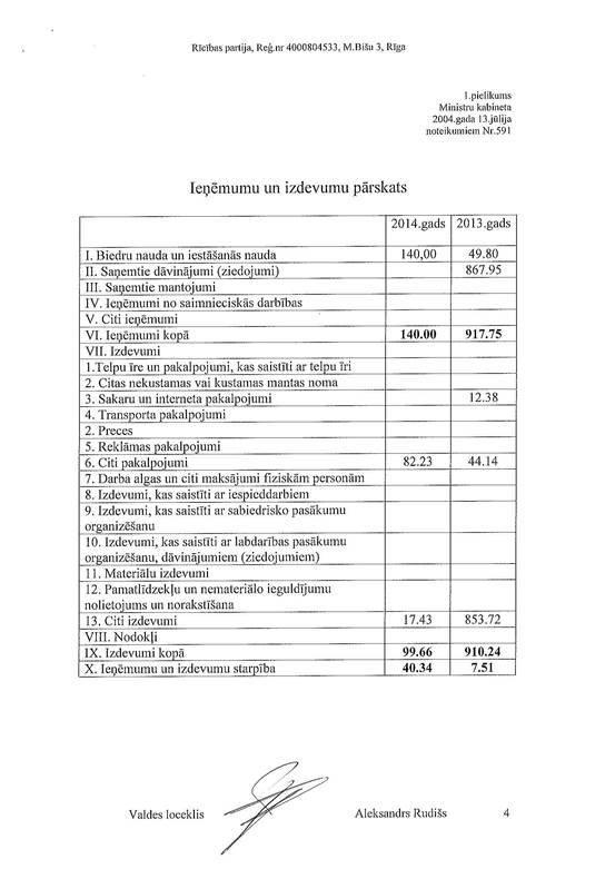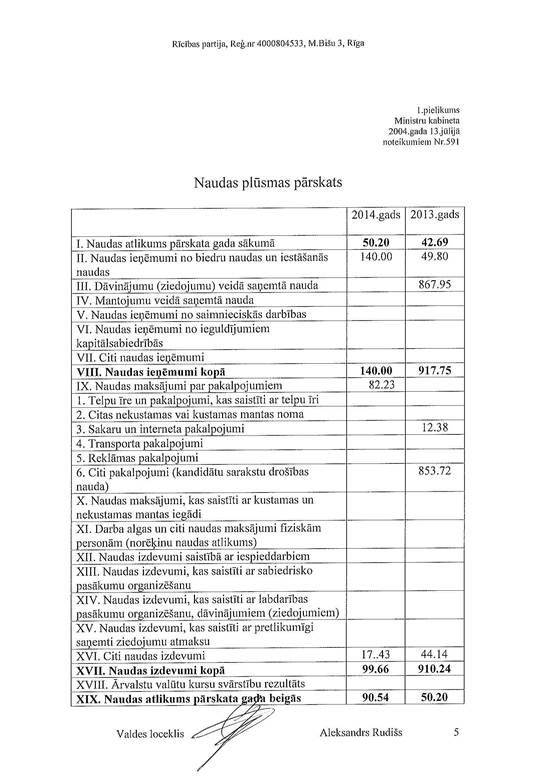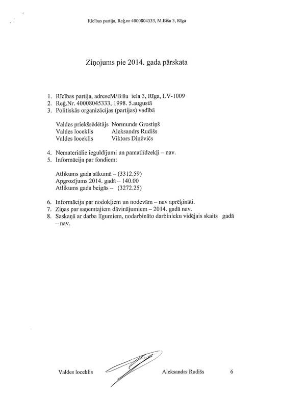 Politiskās partijas "Rīcības partija", reģ. Nr. 40008045333, precizēts 2014. gada pārskats