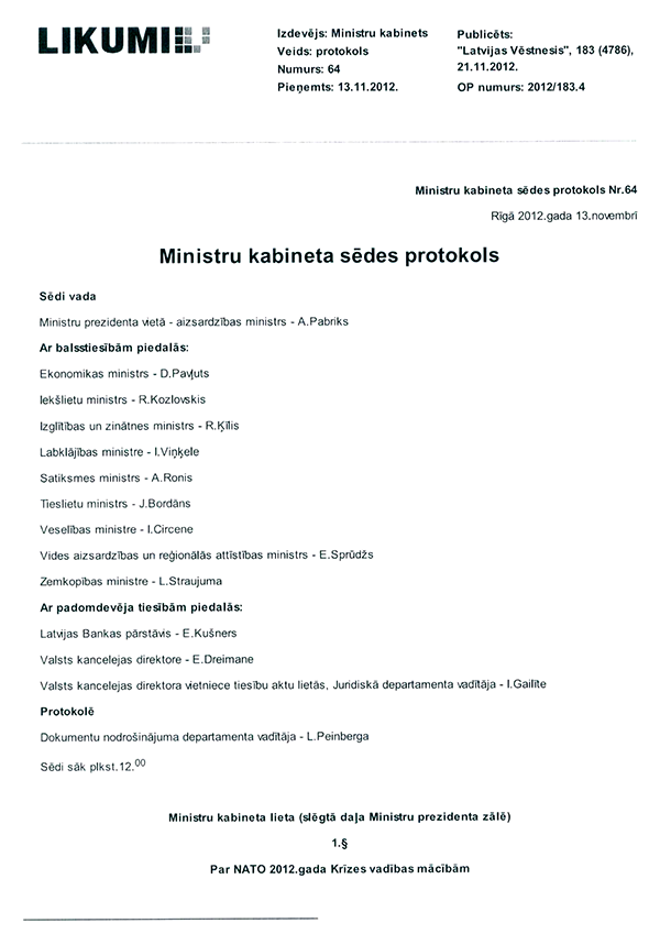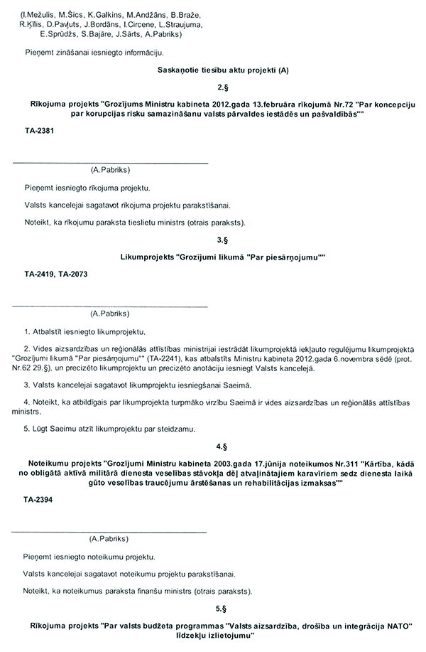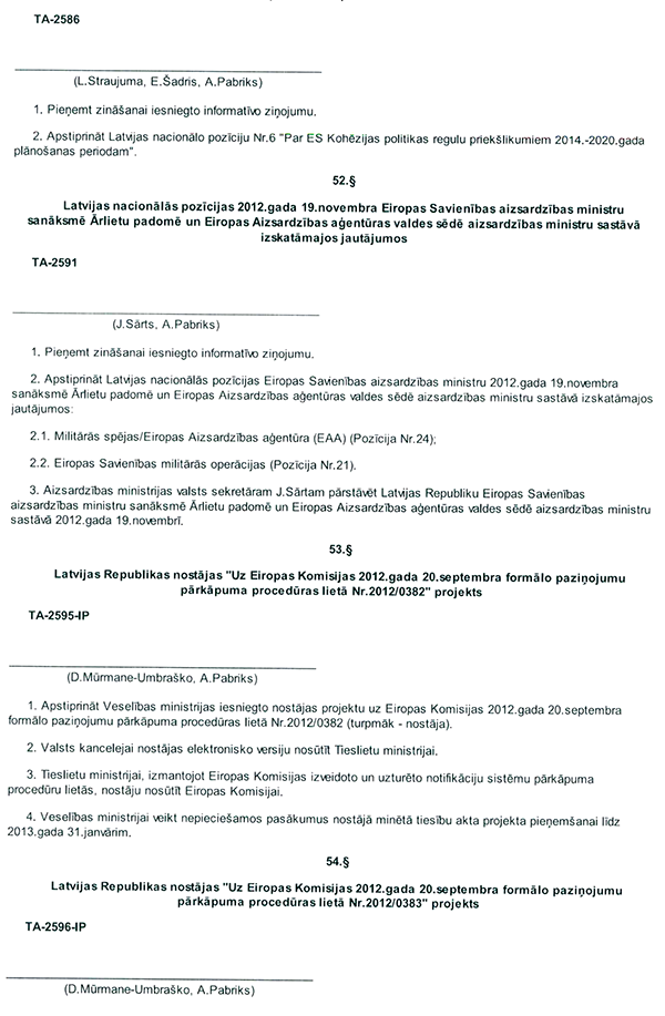 Pirmais darba kārtības punkts – lēmuma projekts "Par Ritvara Jansona 12.Saeimas deputāta pilnvaru apstiprināšanu uz laiku, kamēr no Nacionālās apvienības "Visu Latvijai"–"Tēvzemei un Brīvībai/LNNK" kandidātu saraksta Rīgas vēlēšanu apgabalā ievēlētie deputāti pilda ministru pienākumus".