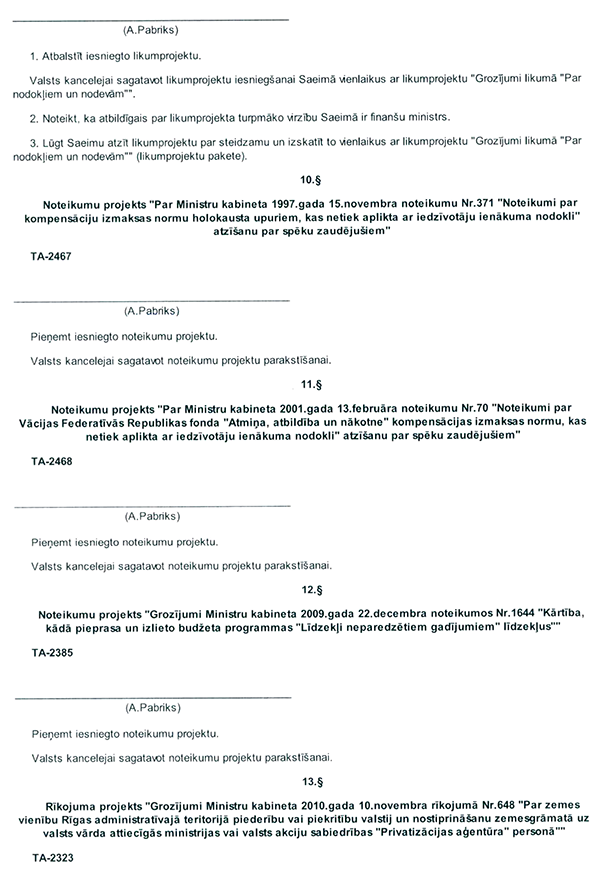 Acīm redzama Latvijas valsts saistību atmaksas secības vienkāršošana... Un papildus tam netiek iedarbināts valsts galvojuma mehānisms. Tam visam varētu piekrist, ja šī piekrišana nenozīmētu netieši atbalstīt un uzņemties atbildību par politiski un ekonomiski visai šaubīgu pasākumu. Tas ir apgrūtināts ar ļoti smagu priekšvēsturi, kurā ietilpst daudz pretrunīgu un necaurspīdīgu valsts pārvaldes veiktu rīcību. Proti, Parex bankas pārņemšana valsts īpašumā, bankas sadalīšana uz divām bankām un "Citadeles" bankas izaicinoši necaurspīdīgā pārdošana.
