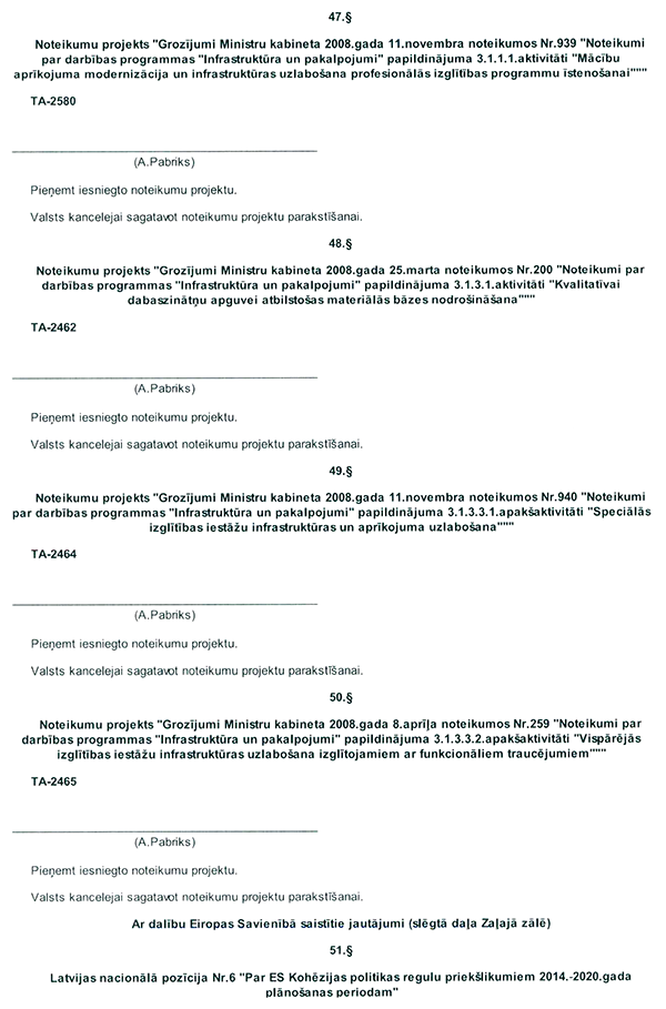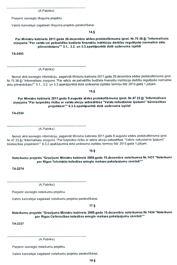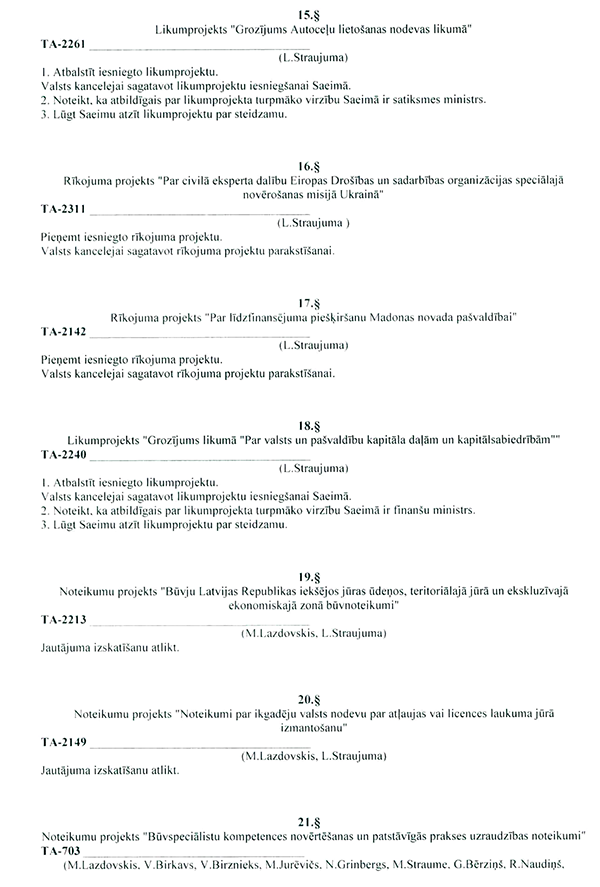M.Bondars. 14. – Juridiskā biroja priekšlikums. Atbalstīts.
