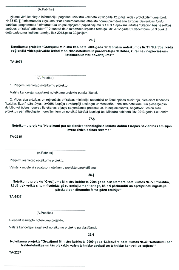 Juridiskā komisija ir izskatījusi Zemkopības ministrijas sagatavoto un Ministru kabineta iesniegto likumprojektu "Grozījumi Latvijas Administratīvo pārkāpumu kodeksā" (Nr.192/Lp12). Šie grozījumi ir veltīti principā... trīs grozījumi ir veltīti atbildībai par veterinārmedicīnas pakalpojumos pieļautajiem pārkāpumiem. Ir precizētas situācijas; ir paredzēts, kā varētu saukt pie atbildības par to, kas šobrīd ir ārpus likuma palicis.
