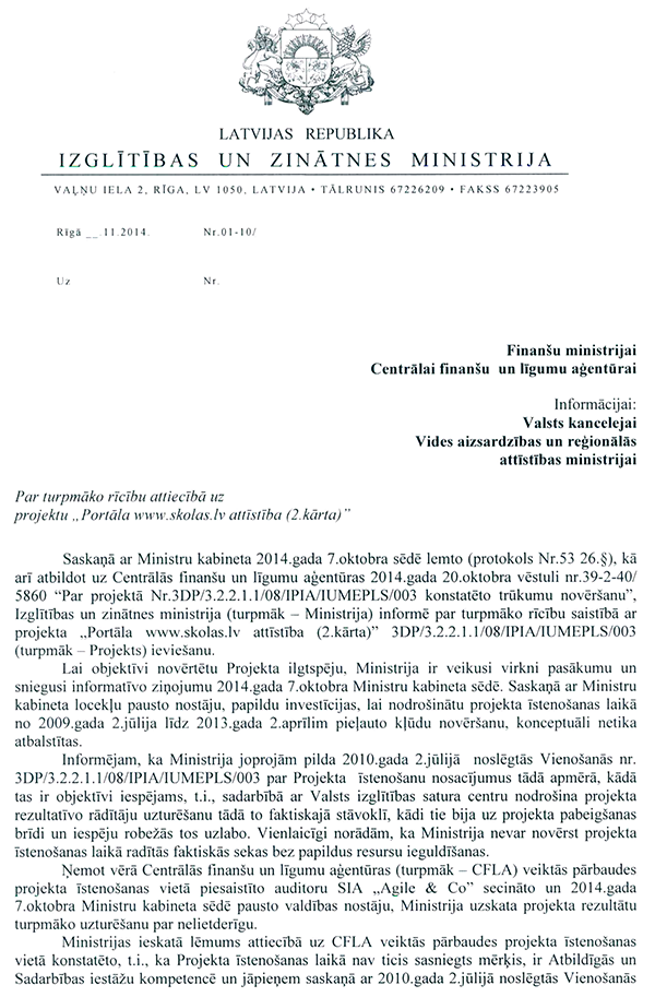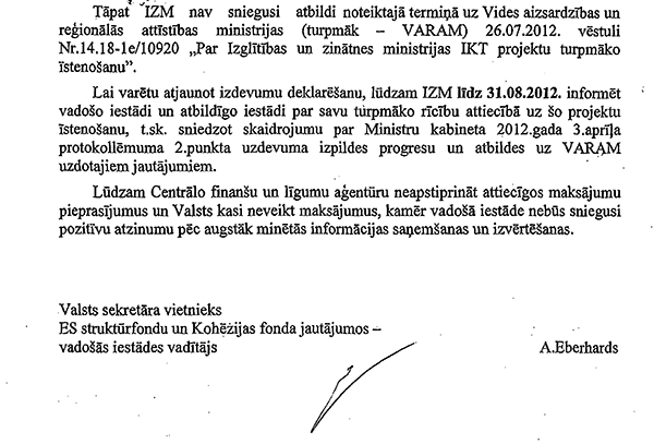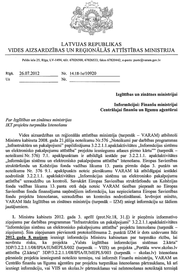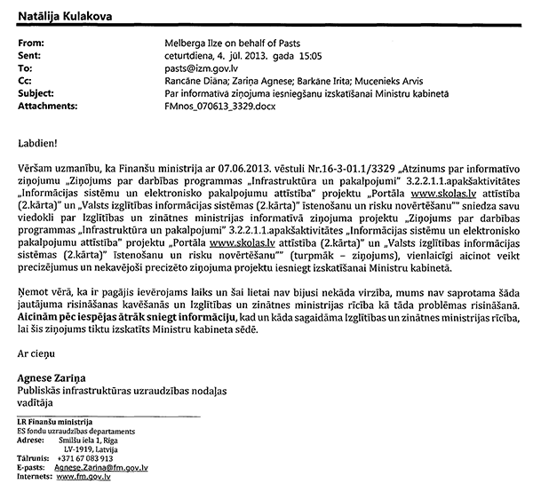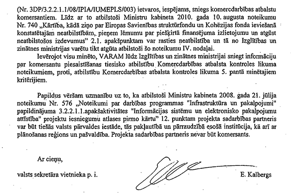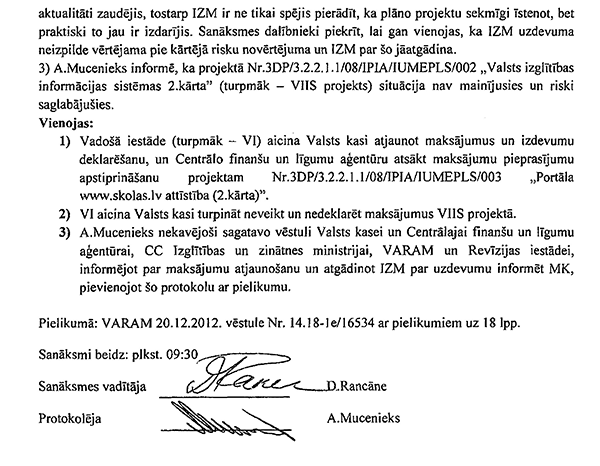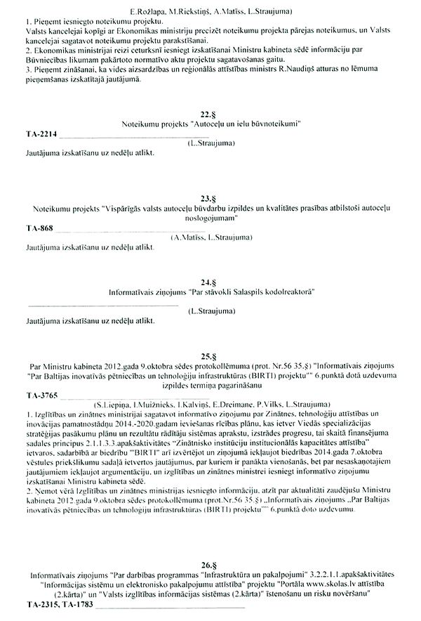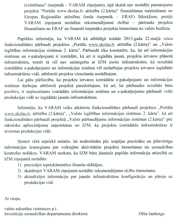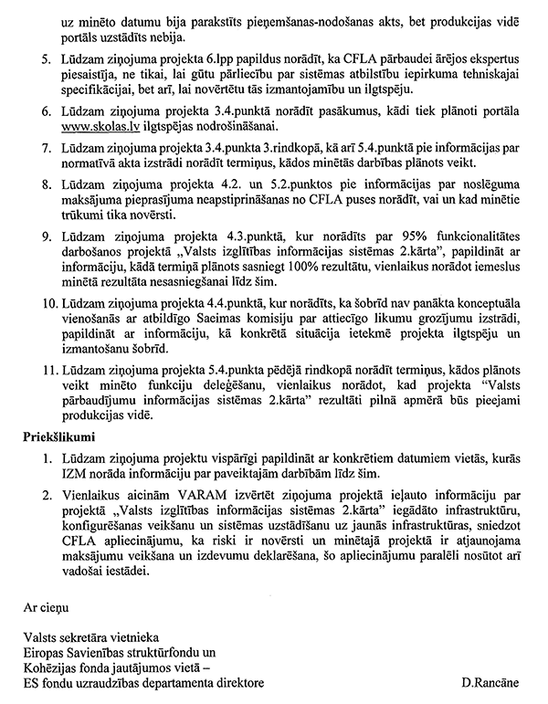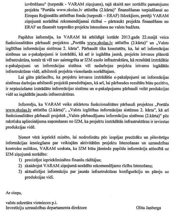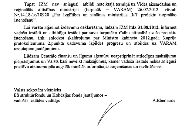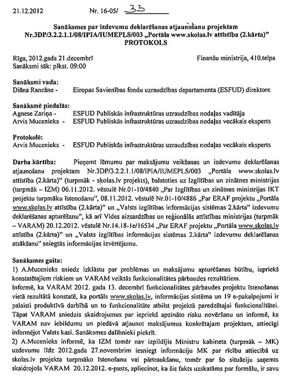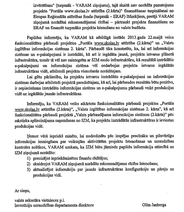 Tas bija saistībā ar iespējamo tiesvedību Eiropas Komisijā, saistībā ar pieļautajiem pārkāpumiem, to skaitā – virzot uz nākamo kārtu pretendentus, nenodrošinot konkurenci. Kurš par to ir atbildīgs? Arī neviens nav atbildīgs!