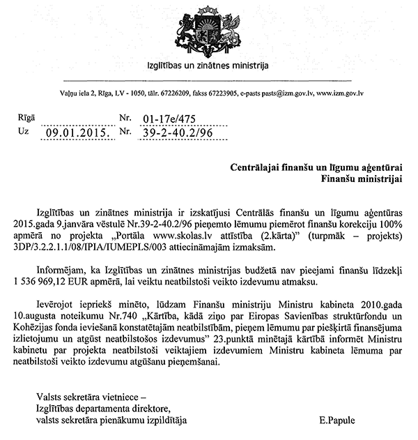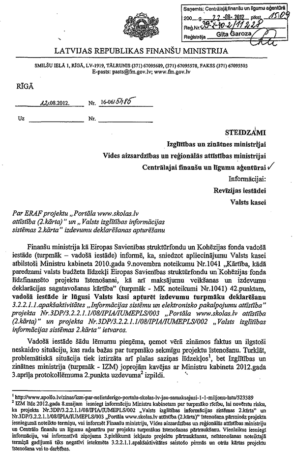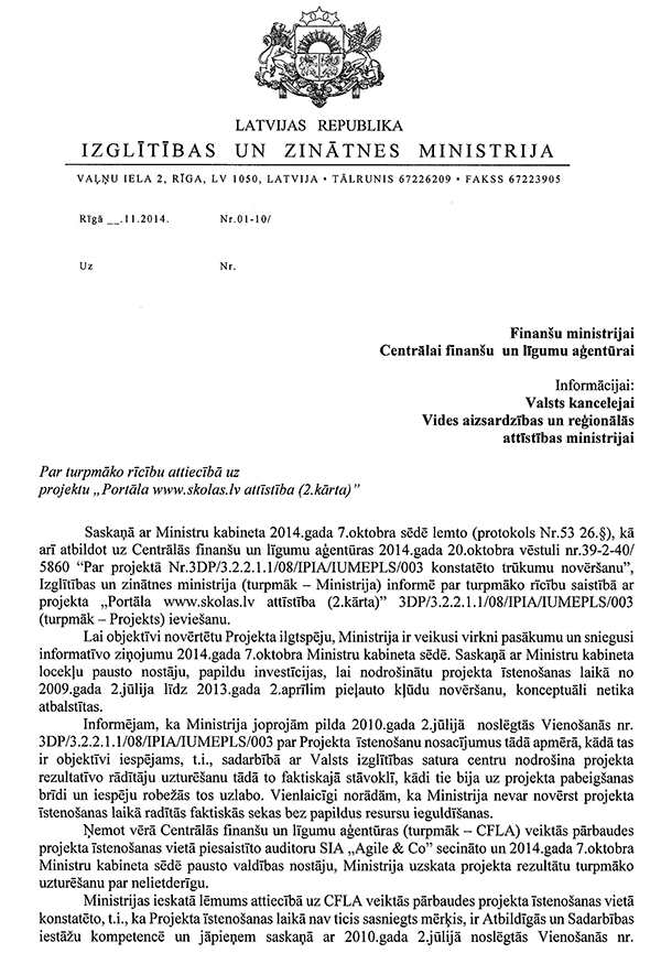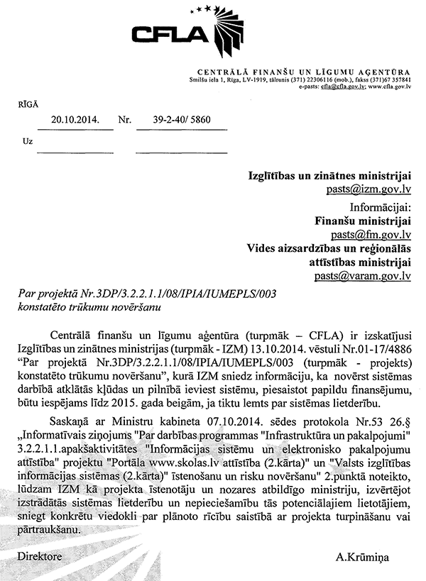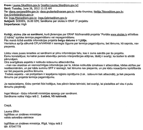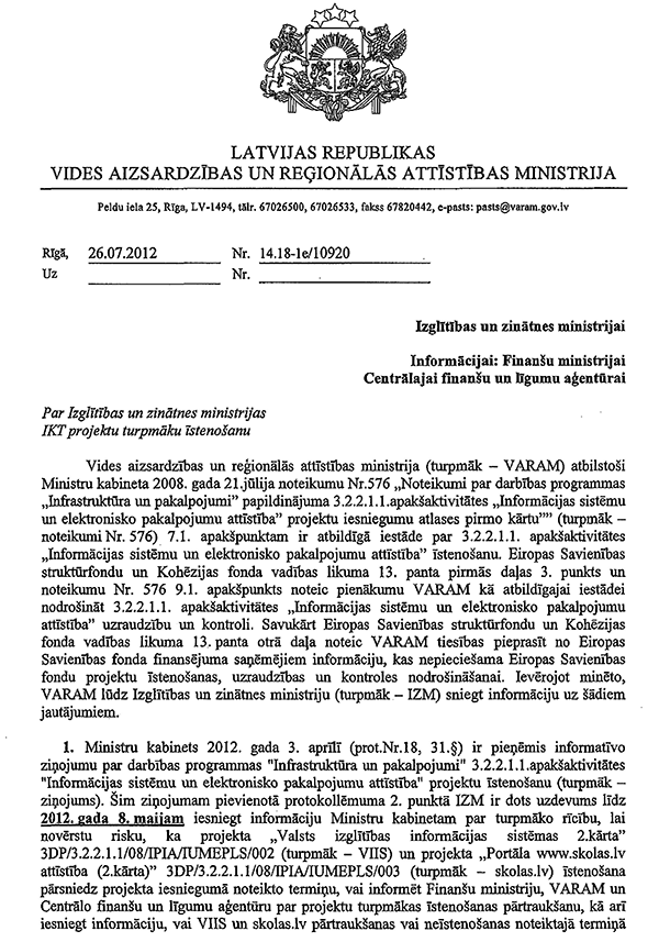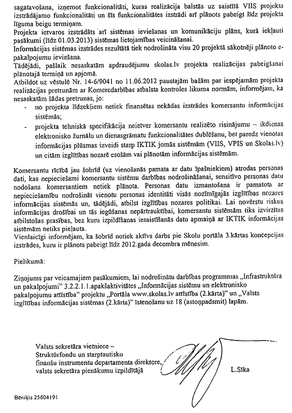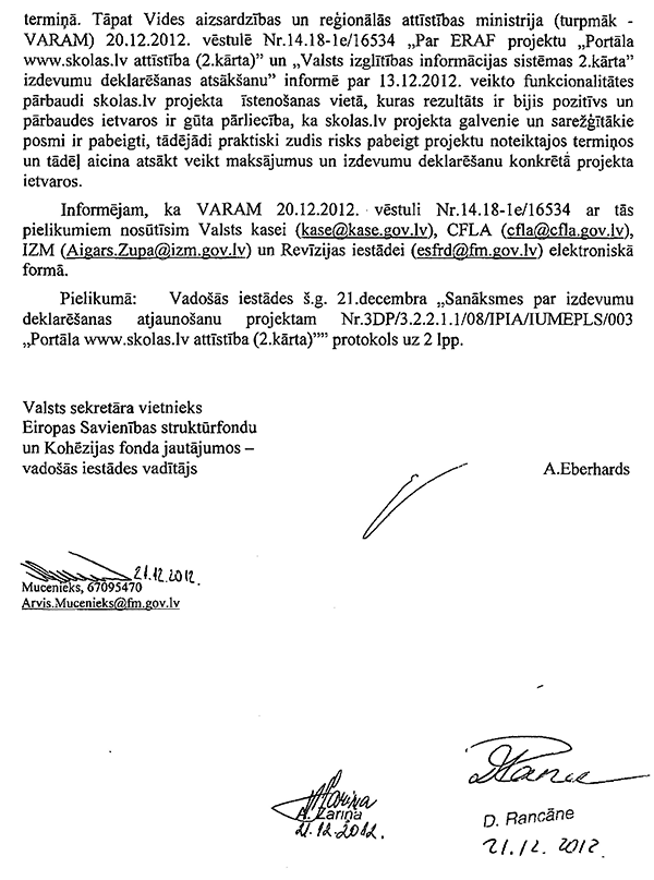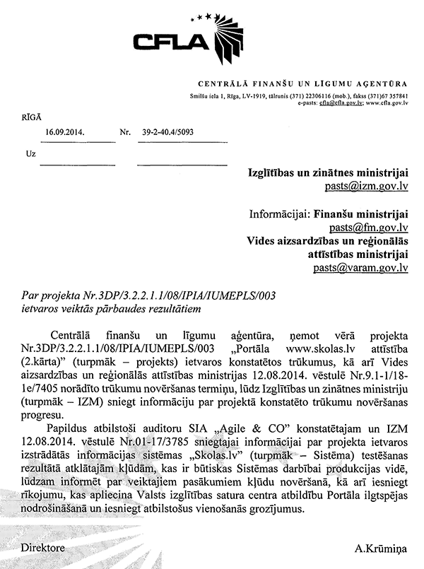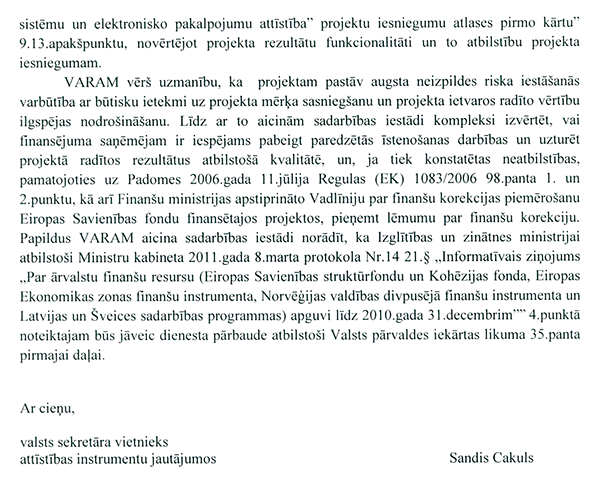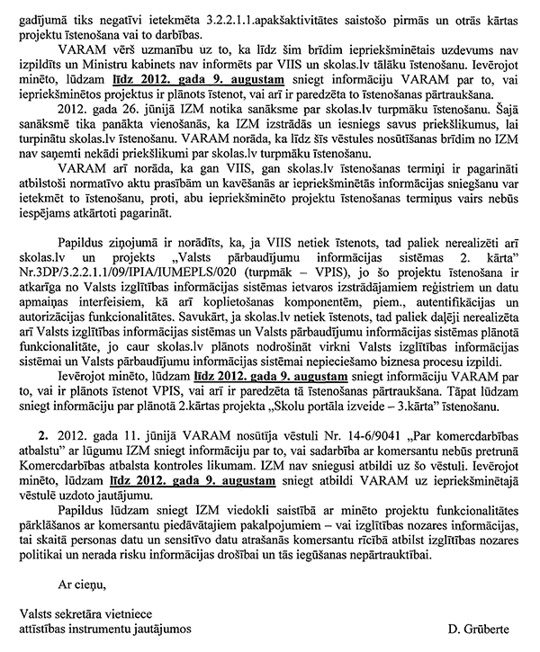Tas bija saistībā ar iespējamo tiesvedību Eiropas Komisijā, saistībā ar pieļautajiem pārkāpumiem, to skaitā – virzot uz nākamo kārtu pretendentus, nenodrošinot konkurenci. Kurš par to ir atbildīgs? Arī neviens nav atbildīgs!