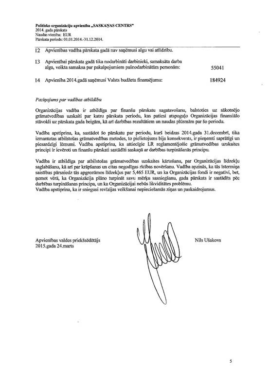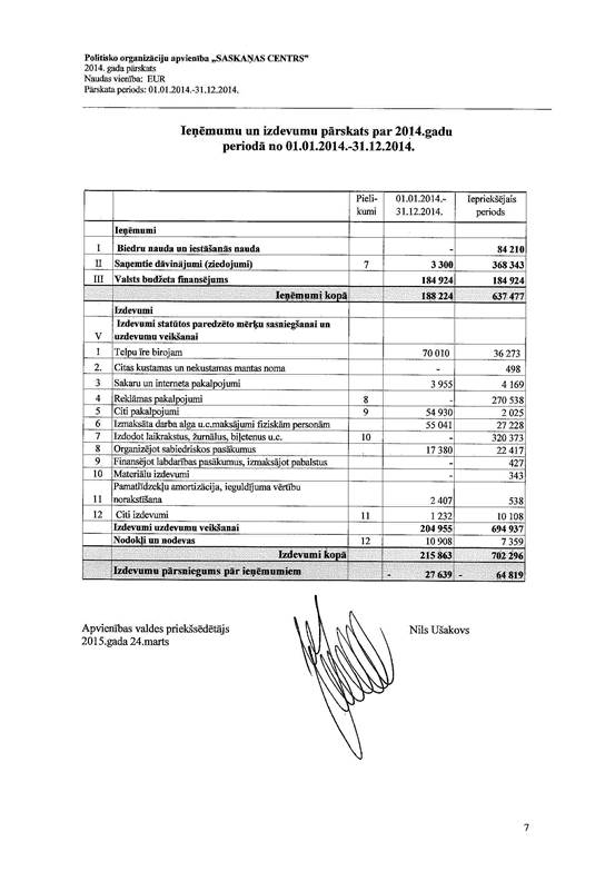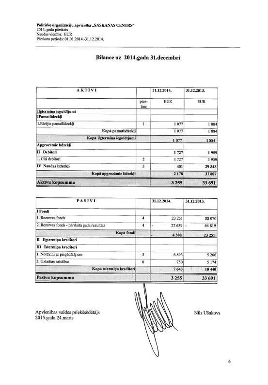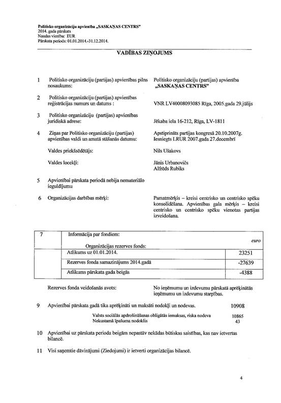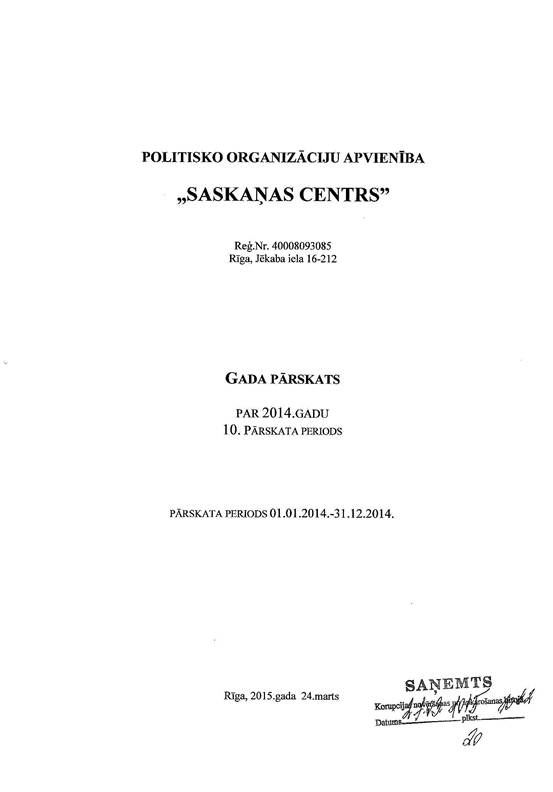 Politisko partiju apvienības "Saskaņas Centrs", reģ. Nr. 40008093085, gada pārskats par 2014.gadu