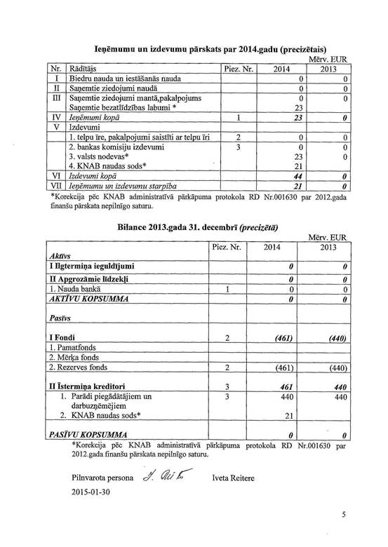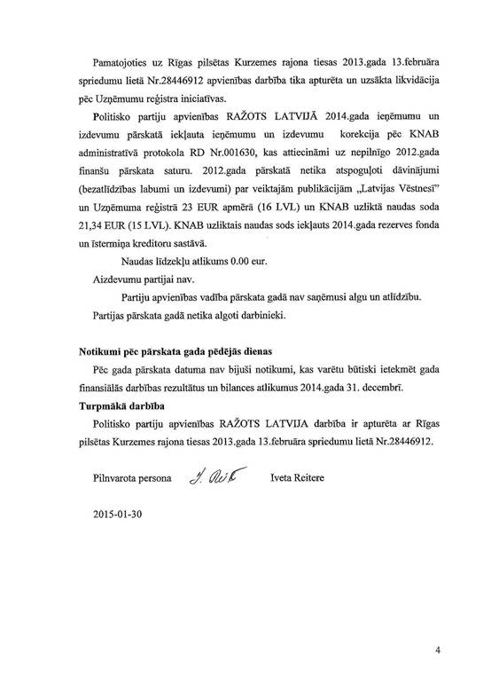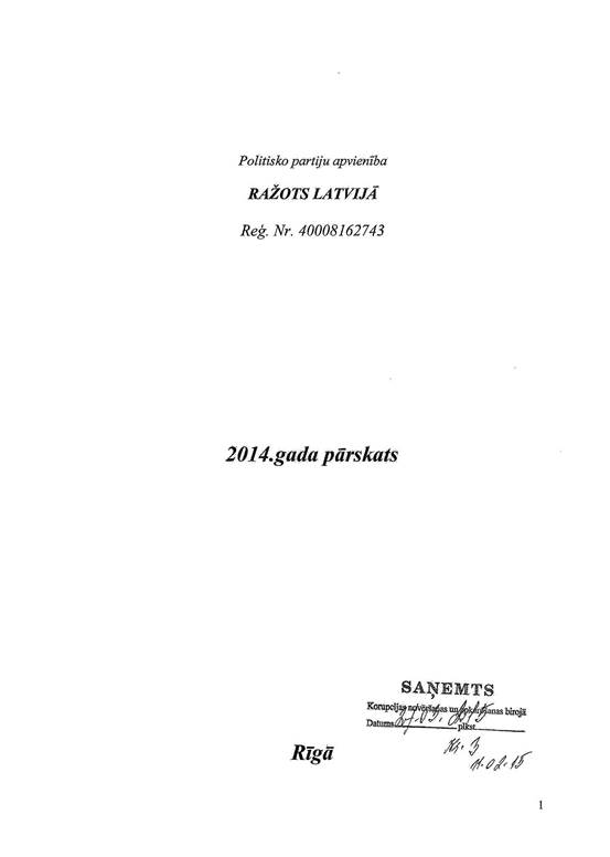 Politisko partiju apvienības "Ražots Latvijā", reģ. Nr. 40008162743, gada pārskats par 2014.gadu