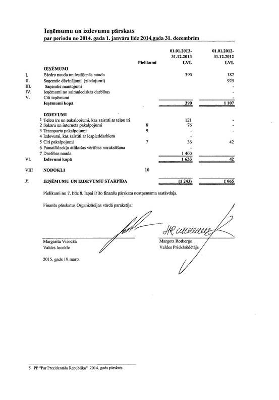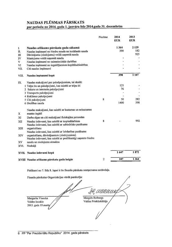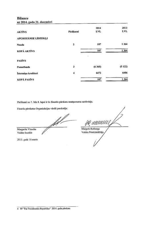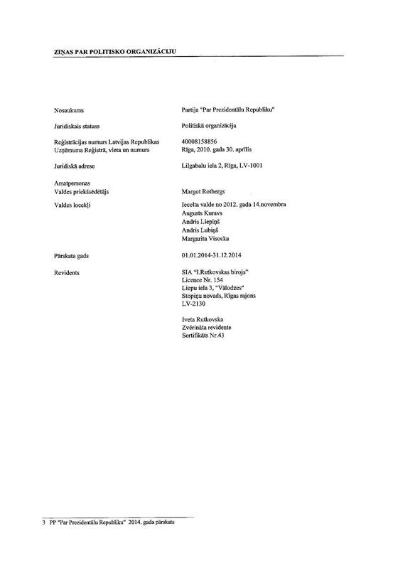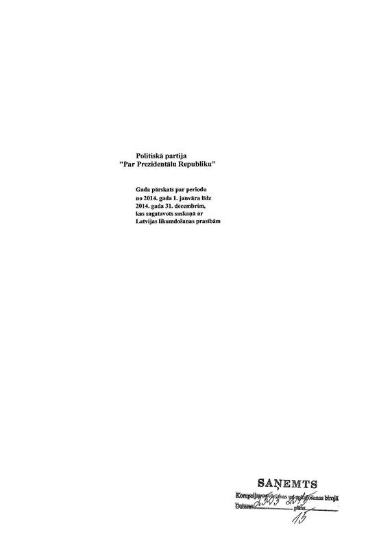 Politiskās partijas "Par prezidentālu republiku", reģ. Nr. 40008158856, gada pārskats par 2014.gadu
