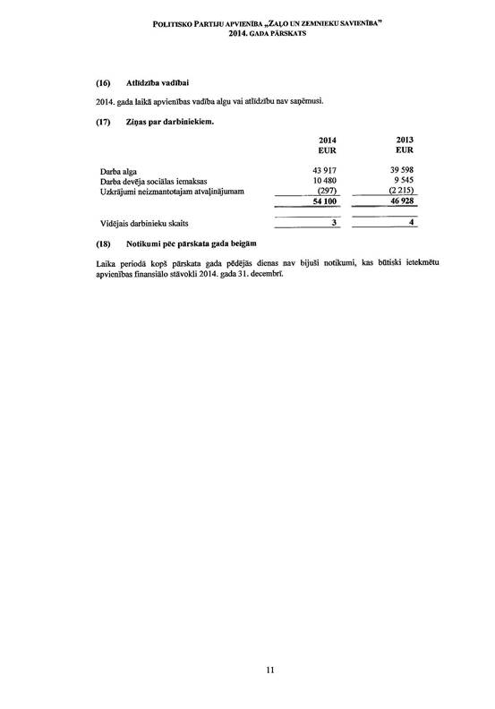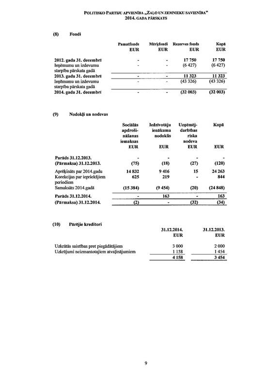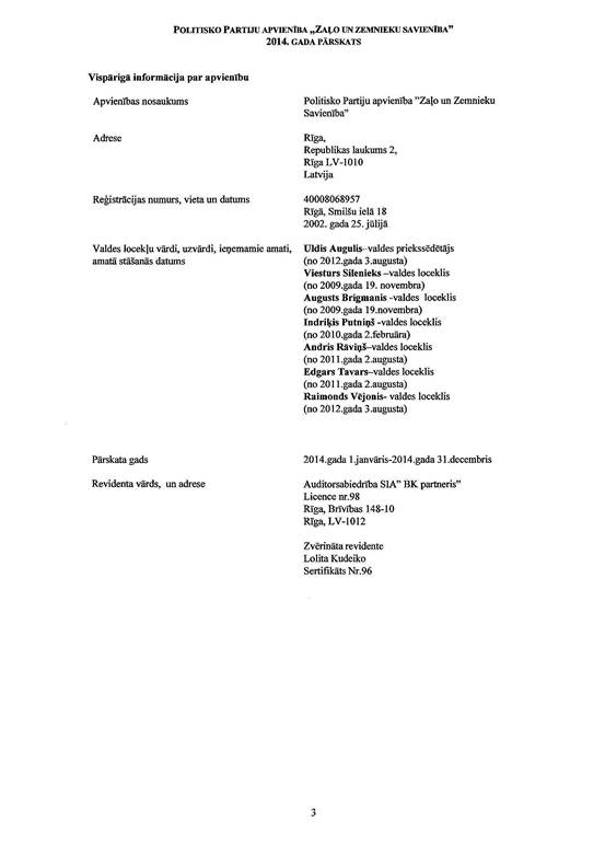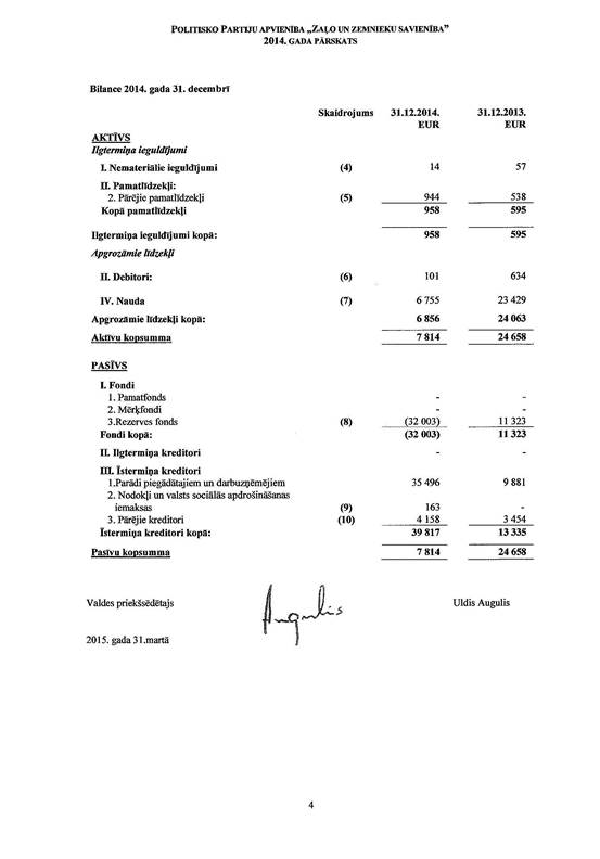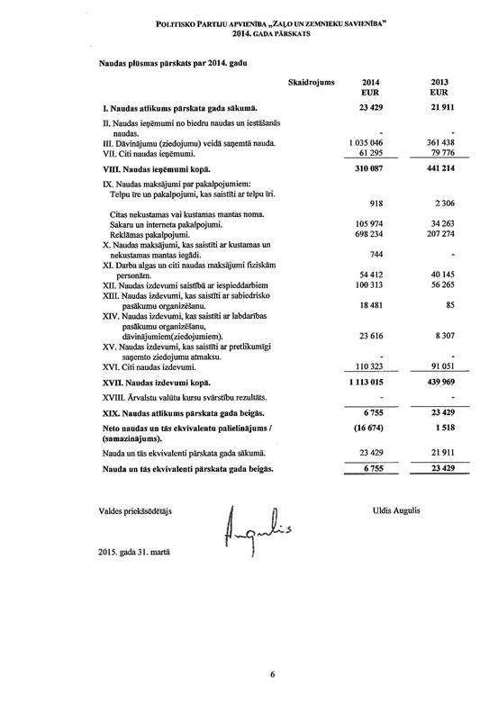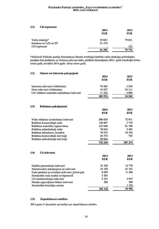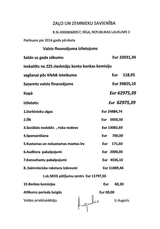 Politisko partiju apvienības "Zaļo un Zemnieku savienība", reģ. Nr. 40008068957, gada pārskats par 2014.gadu