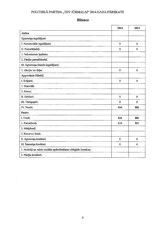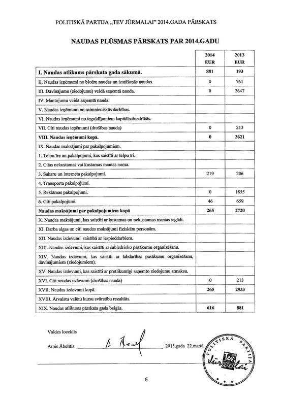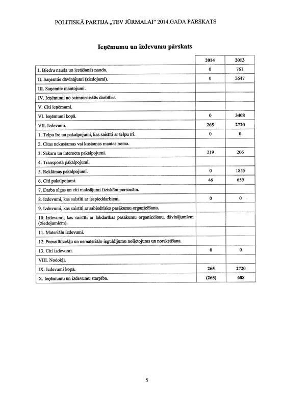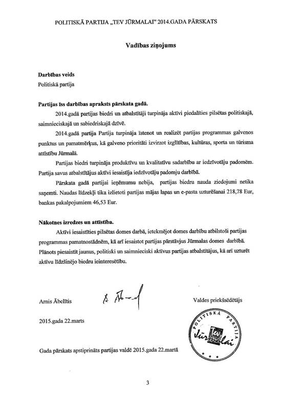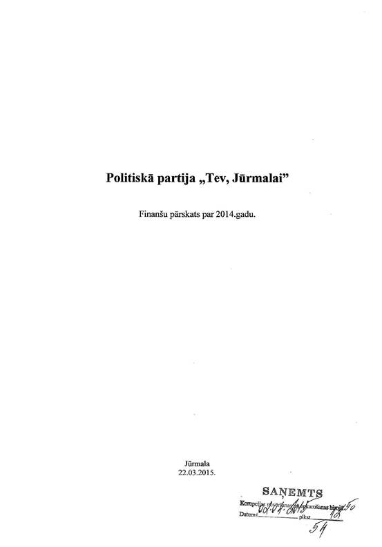 Politiskās partijas "Tev, Jūrmalai", reģ. Nr. 50008136051, gada pārskats par 2014.gadu