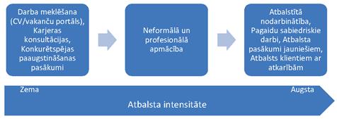 5. Bezdarbnieku atgriešanai darba tirgū – ierobežota atbalsta intensitātes diferencēšana dažādām mērķa grupām, kas ļautu operatīvi identificēt klientus, kam primāri nepieciešams atbalsts un iesaiste atbalsta pasākumos.