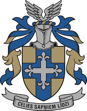 3. Bīriņu dzimtas ģerbonis (Zelta laukā zils krusts, uz tā zelta liliju krusts. Sudraba smailķivere pārsegta ar zilu-zelta grīsti, kleinodā sudraba dubultspārni; lambrekeni: zils, zelts. Devīze ar melnu uz sudraba lentes: CELIES SAPŅIEM LĪDZI) – reģistrēts 2016.gada 16.jūnijā. (3.pielikums).