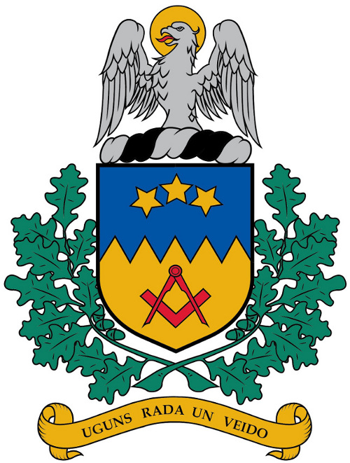 1. Biedrības "Jāņa Loža Ziemeļzvaigzne" ģerbonis (Zilā laukā sudraba astoņstaru zvaigzne. Vairogs pārsegts ar sudraba-sarkanu grīsti, kleinodā melns krauklis paceltiem spārniem un ar satvertu tādu pašu spalvu paceltā kājā, uz kraukļa savienoti zelta cirkulis un tāds pats taisnleņķis. Lambrekeni – sarkans, sudrabs. Devīze ar melnu uz sudraba lentes: NO ZVAIGZNĒM PIE CILVĒKIEM) – reģistrēts 2016.gada 30.septembrī. (1.pielikums);