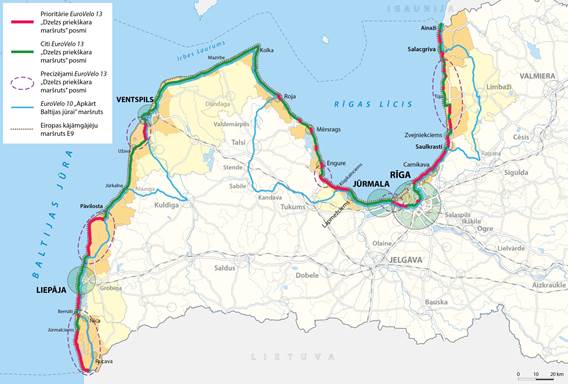 5. Starptautiskā velomaršruta Eirovelo 13 posmu nostiprināšana,