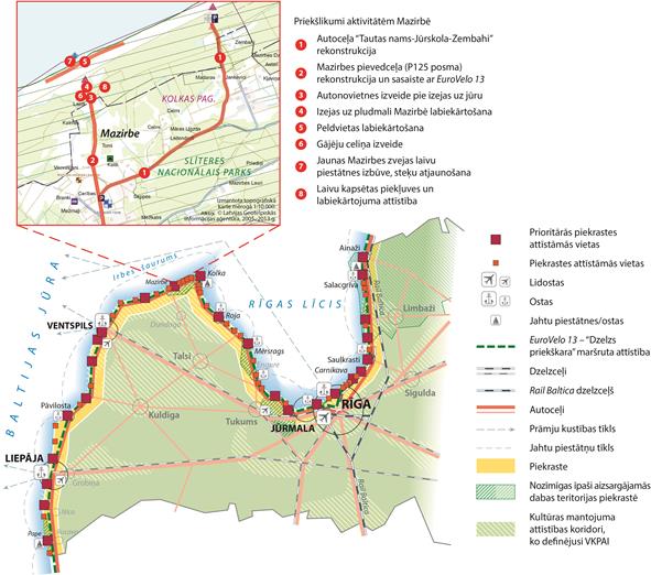 Piekrastes attīstāmo vietu sasniedzamības un piekļuves novērtējums no
