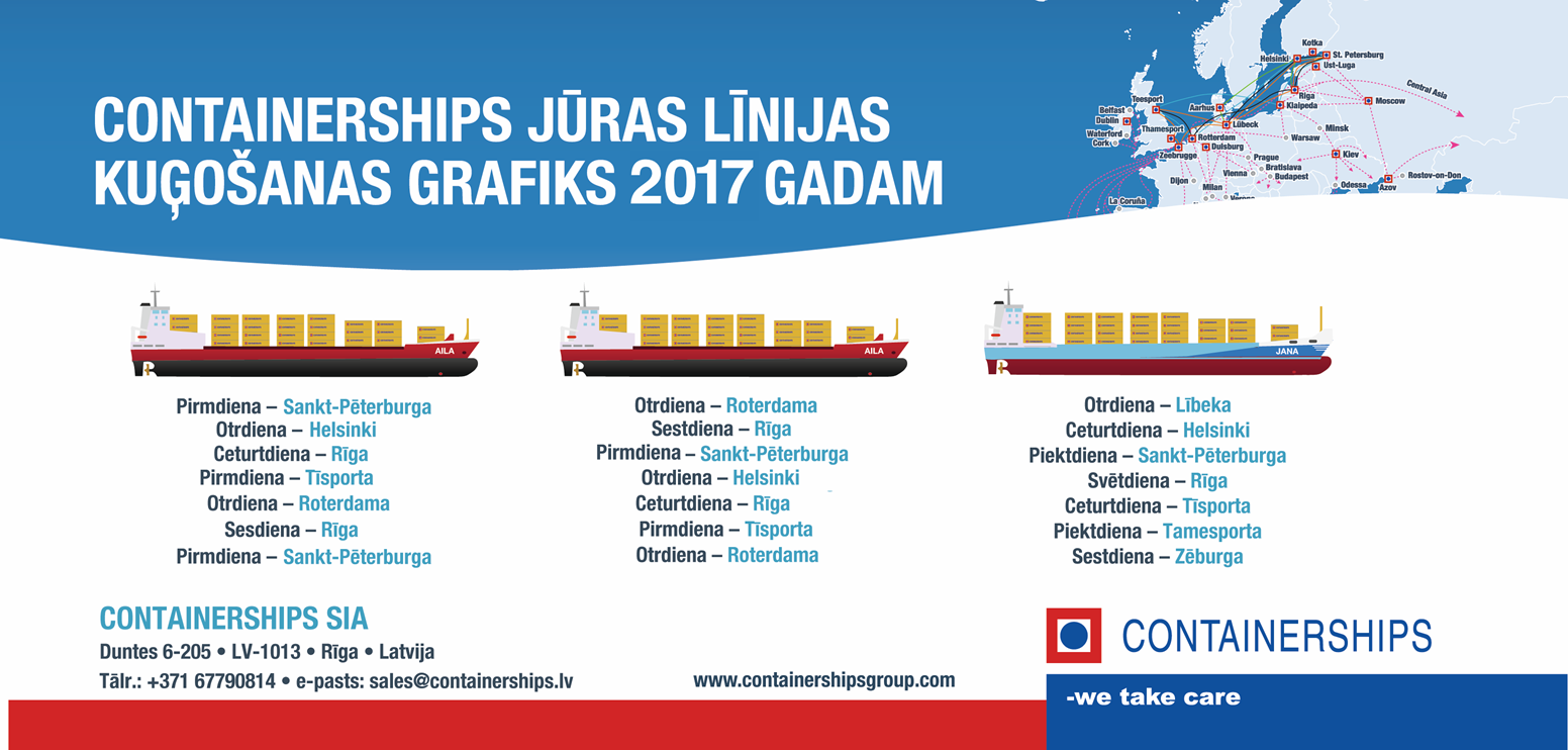 CONTAINERSHIPS jūras līnijas kuģošanas grafiks 2017. gadam