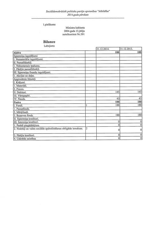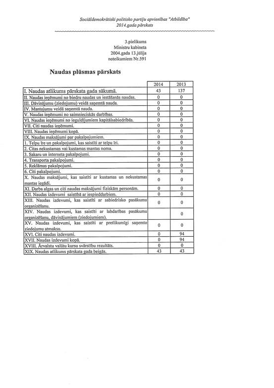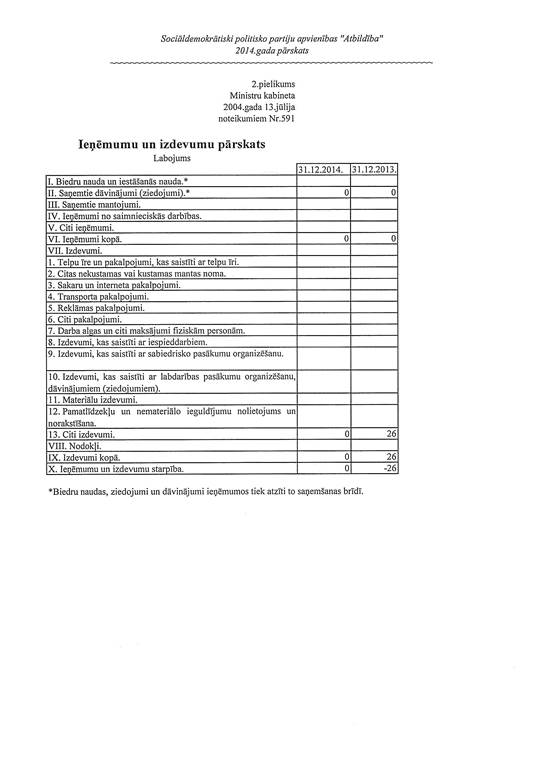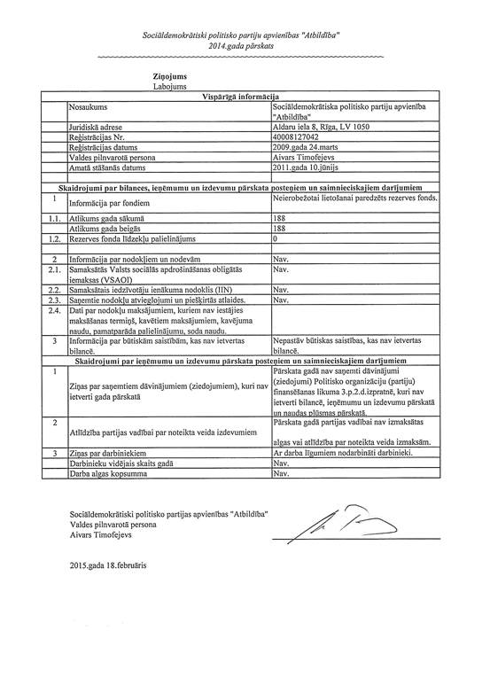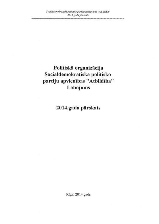 Politisko partiju apvienības "ATBILDĪBA - sociāldemokrātiska politisko partiju apvienība", reģ. Nr. 40008127042, precizēts gada pārskats par 2014. gadu