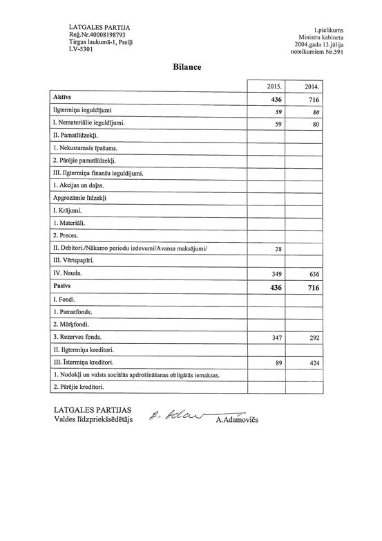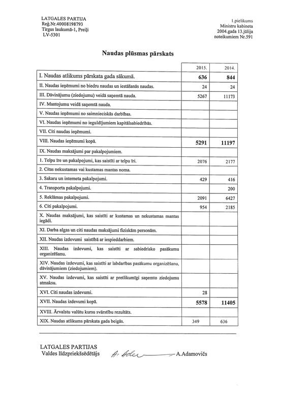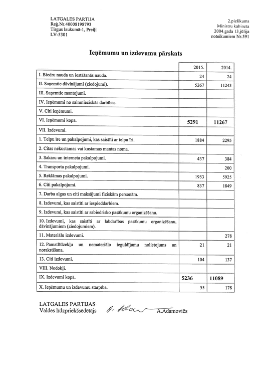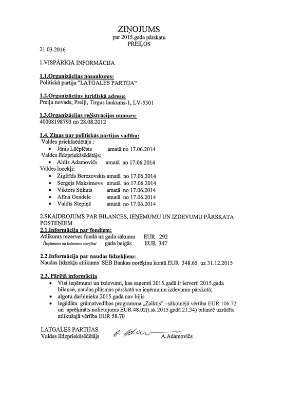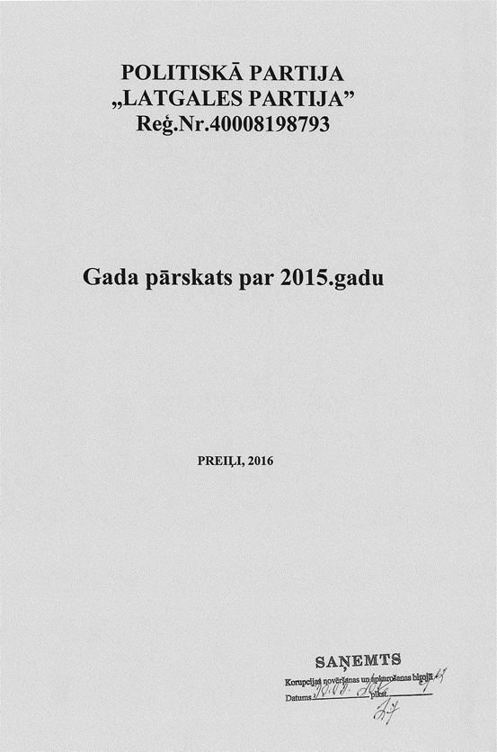 Politiskās partijas "LATGALES PARTIJA", reģ. Nr. 40008198793, gada pārskats par 2015.gadu