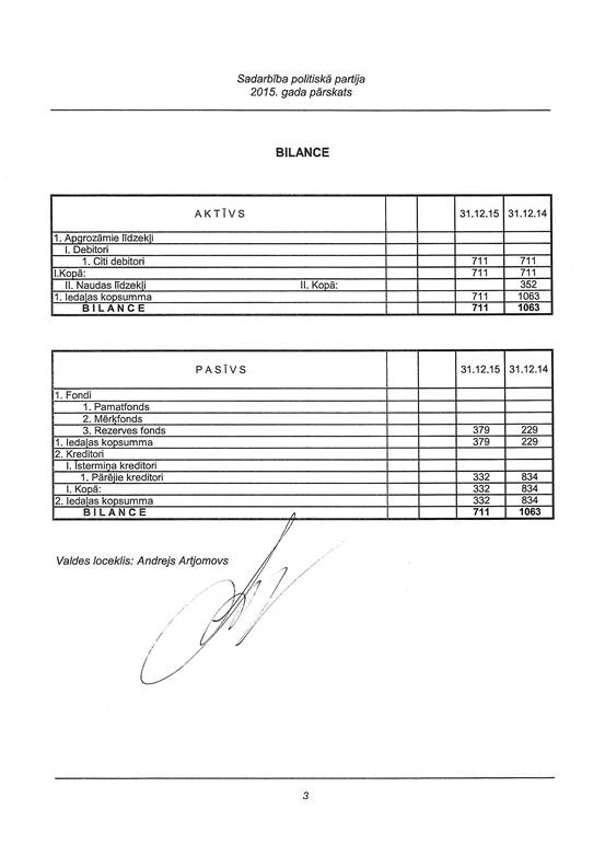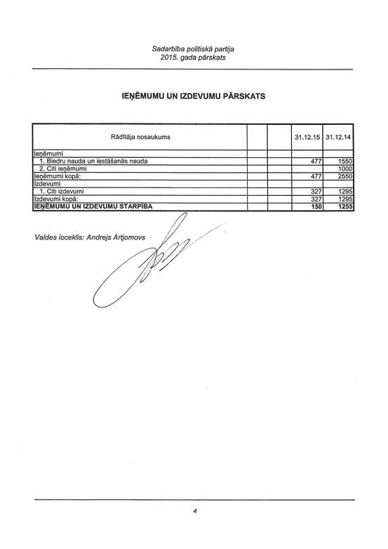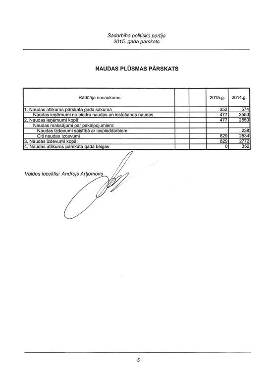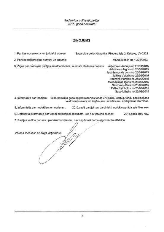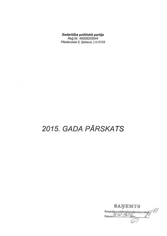 Politiskās partijas "Sadarbība", reģ. Nr. 40008205544, gada pārskats par 2015. gadu