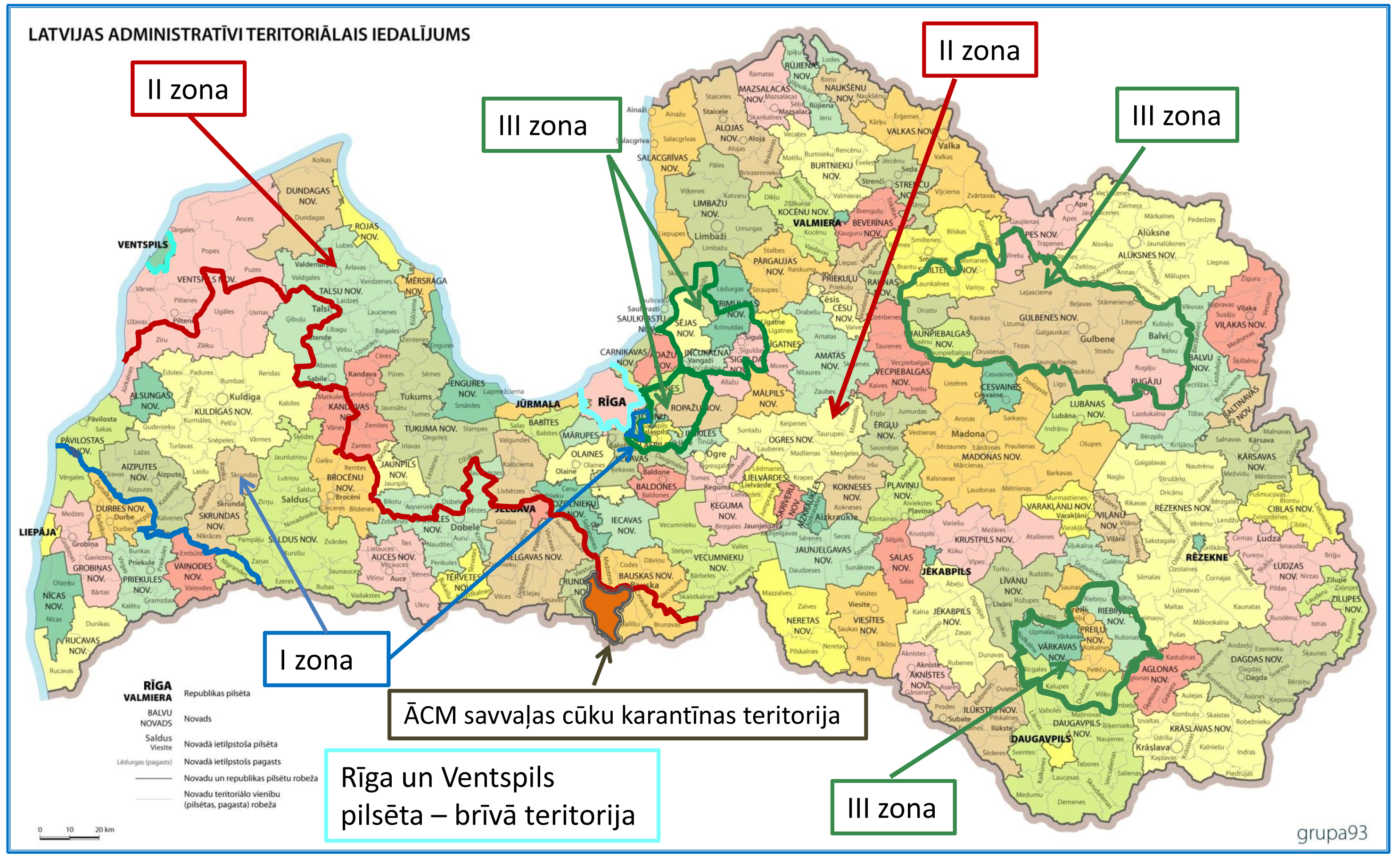 Pielikumā: ĀCM savvaļas cūku karantīnas teritorija.