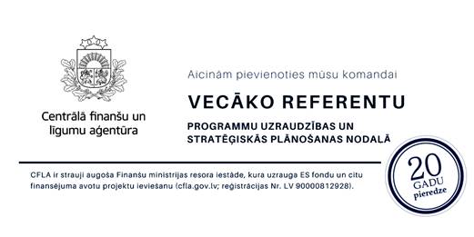 Centrālā finanšu un līgumu aģentūra izsludina konkursu uz Programmu uzraudzības un stratēģiskās plānošanas nodaļas vecākā referenta amatu