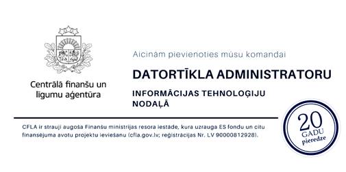 Centrālā finanšu un līgumu aģentūra izsludina konkursu uz Infrastruktūras tehnoloģiju nodaļas datortīkla administratora amatu