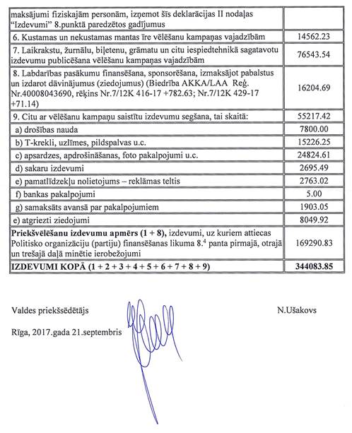 Politiskās partijas ""SASKAŅA" sociāldemokrātiskā partija", reģ. Nr. 40008153670, precizēta vēlēšanu ieņēmumu un izdevumu deklarācija